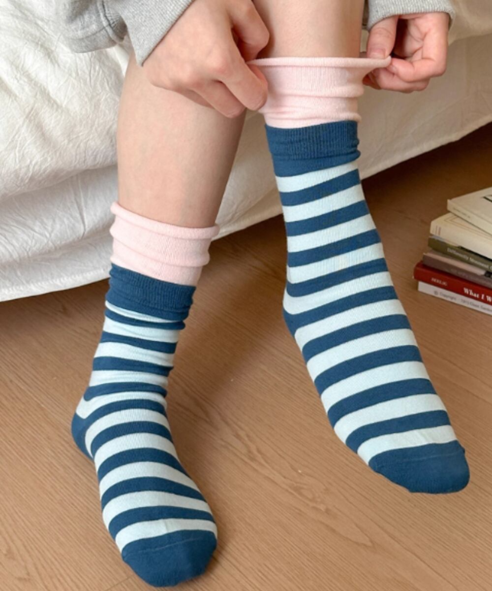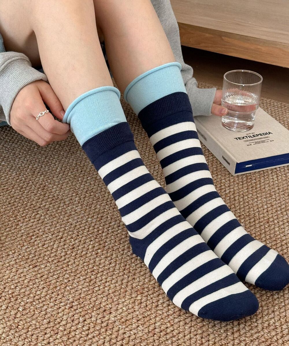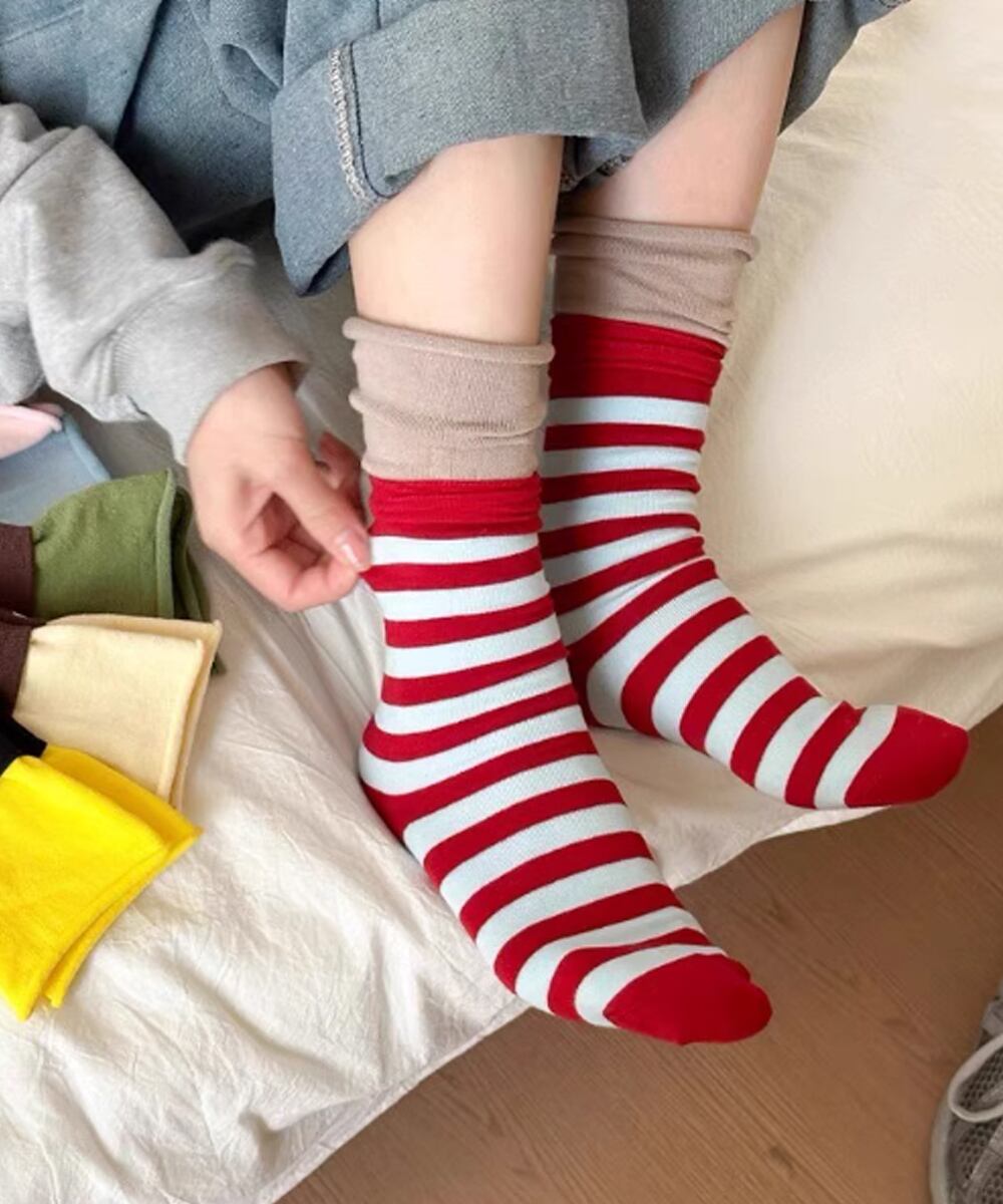 トレンド靴下韓国風 バイカラーソックス ルーズソックス春夏