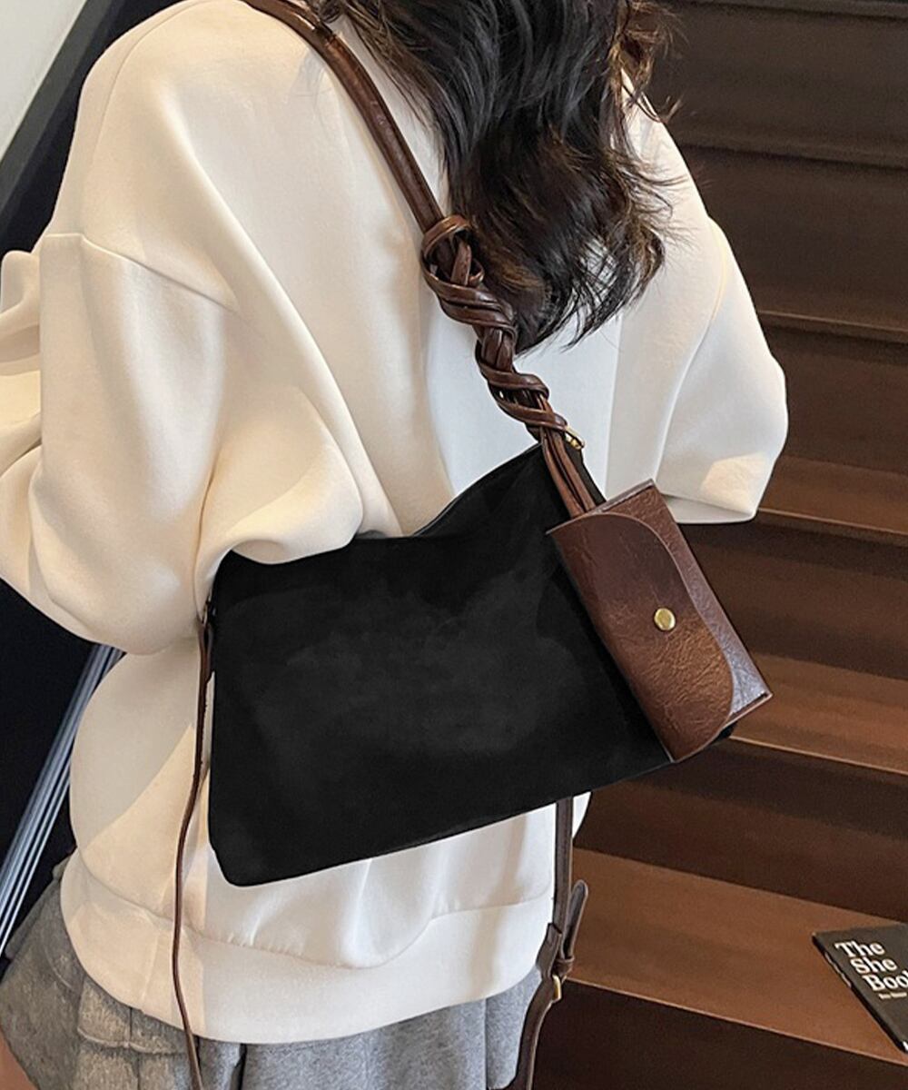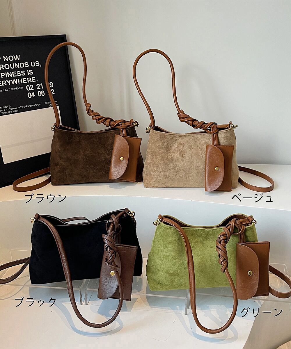 【日本倉庫即納】 スエード調ショルダーバッグ ポーチ付き鞄