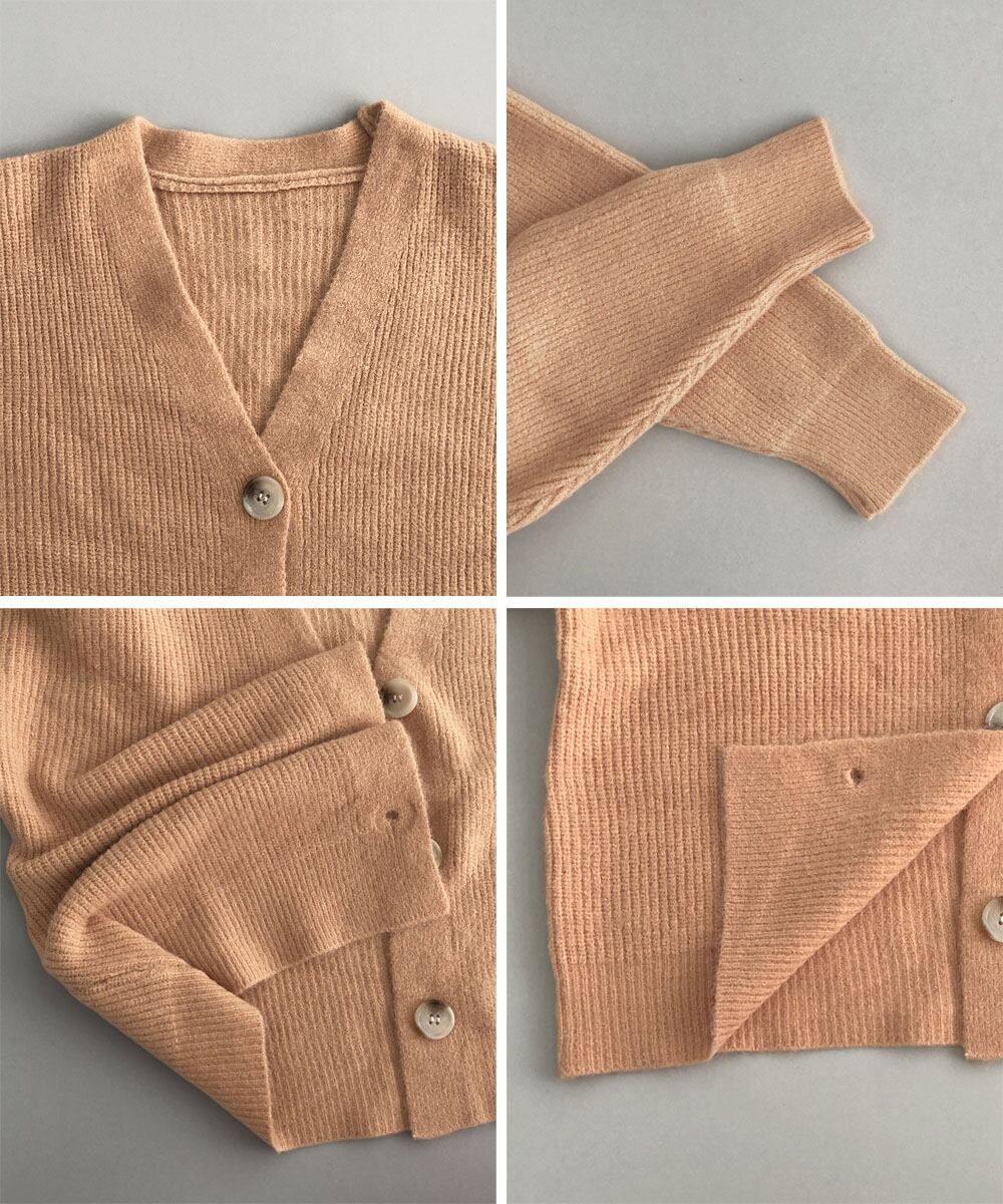 リブニットトップス オフィスカジュアル お洒落ニットカーデ