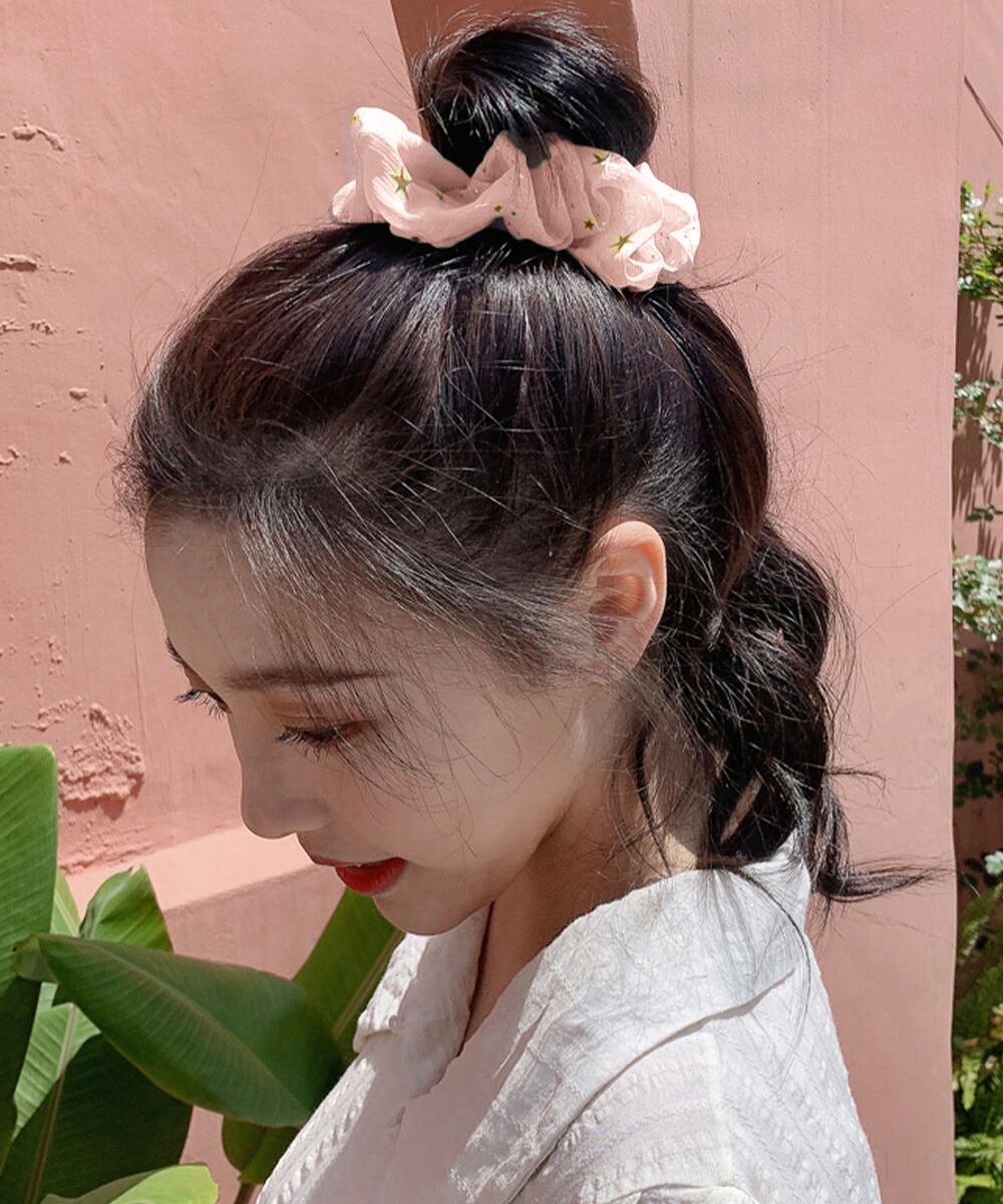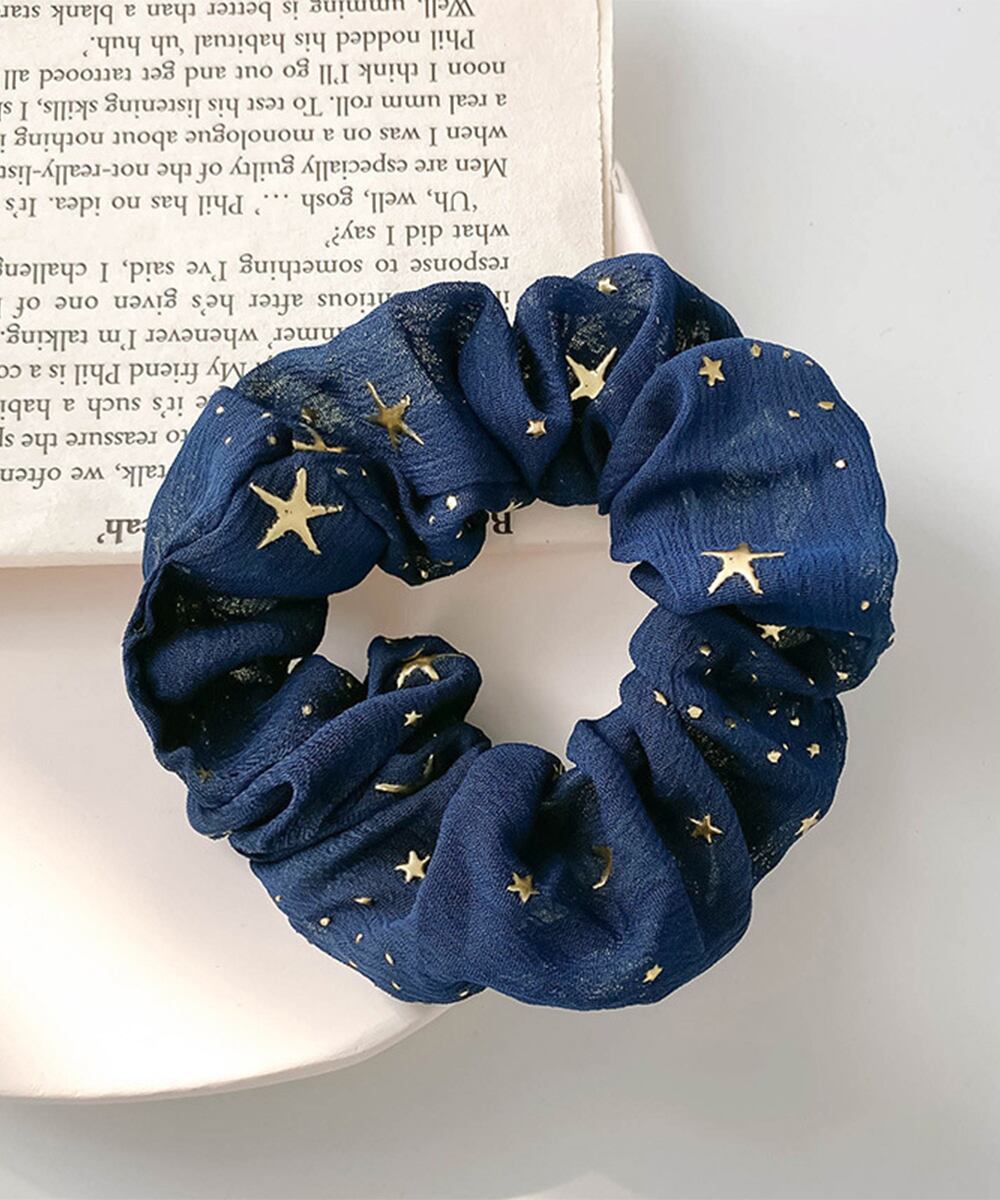 夜空のようなきらめきを散りばめた星柄シュシュ。