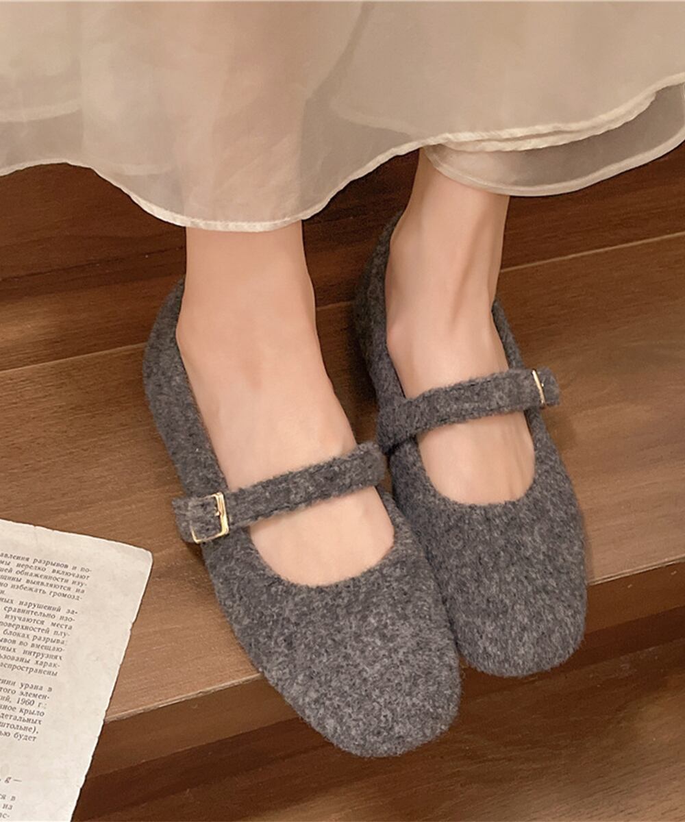 もこもこ素材がかわいいメリージェーンシューズ。
