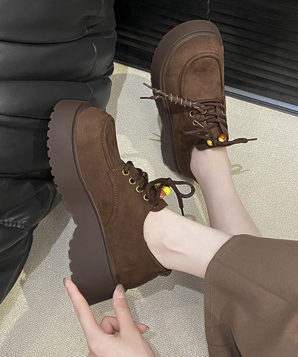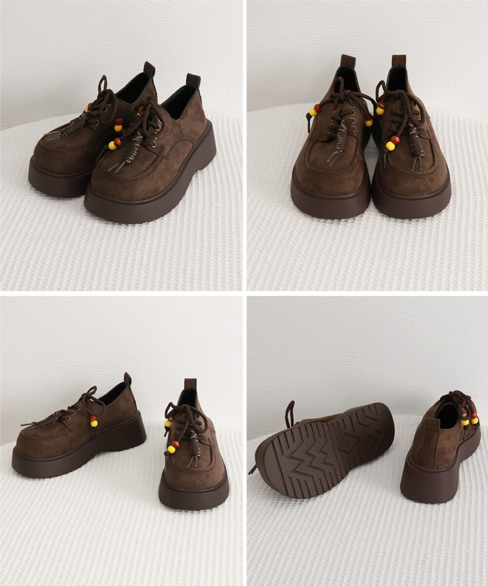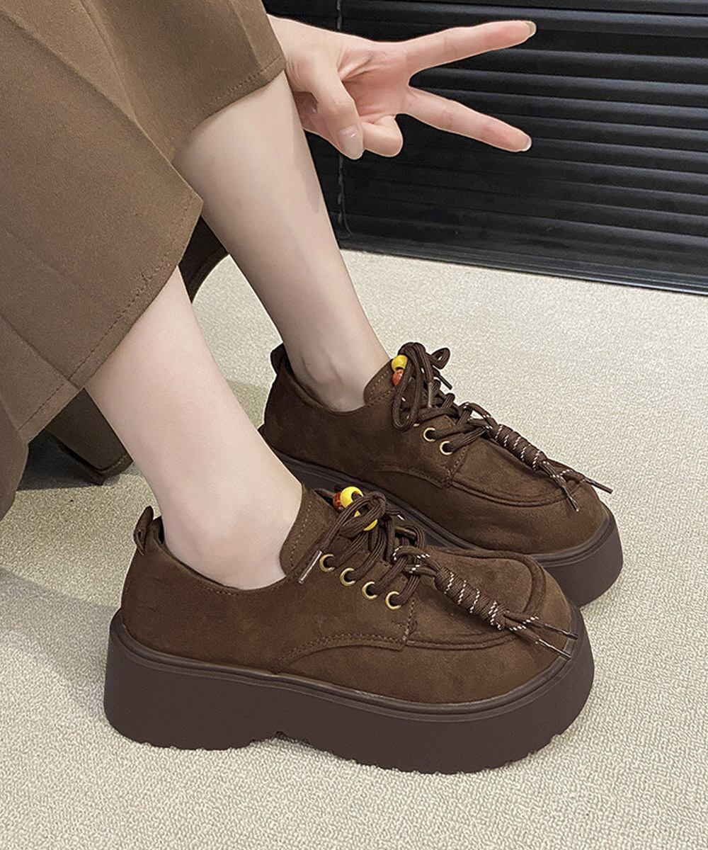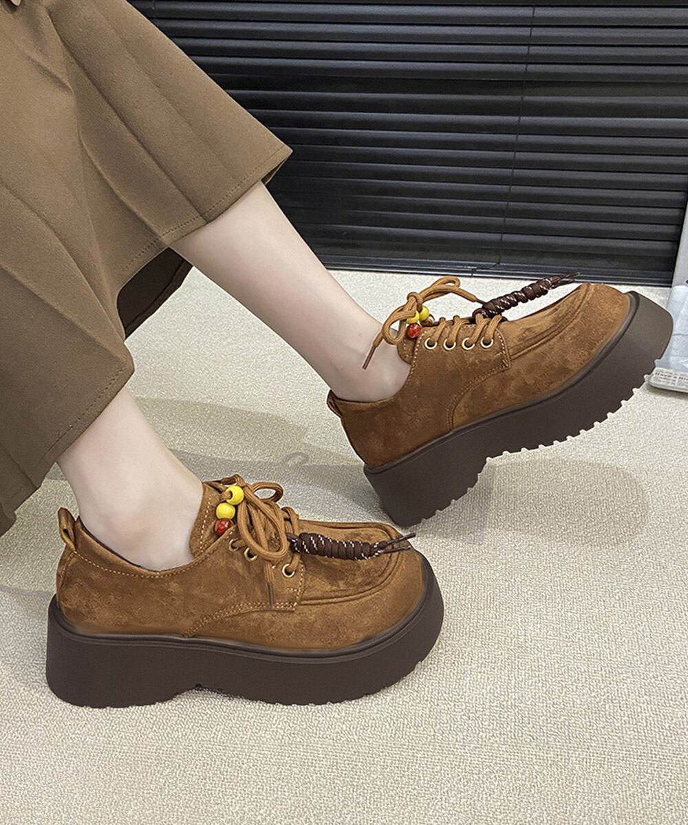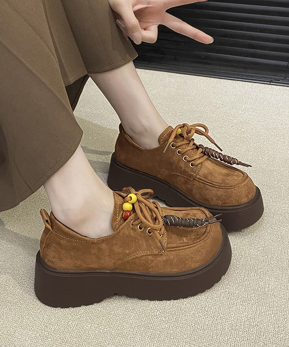 編み上げローファー 疲れにくい 厚底靴 太ヒールシューズ