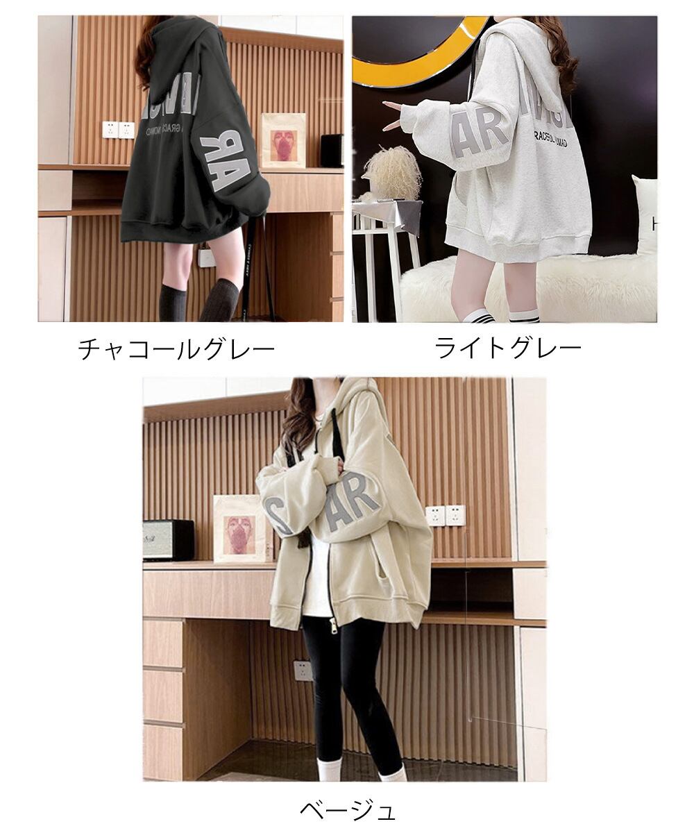 ゆったりオーバーサイズトレーナー 前開きジップアップ長袖トップス フーディー 体型カバーライトアウター10代20代30代