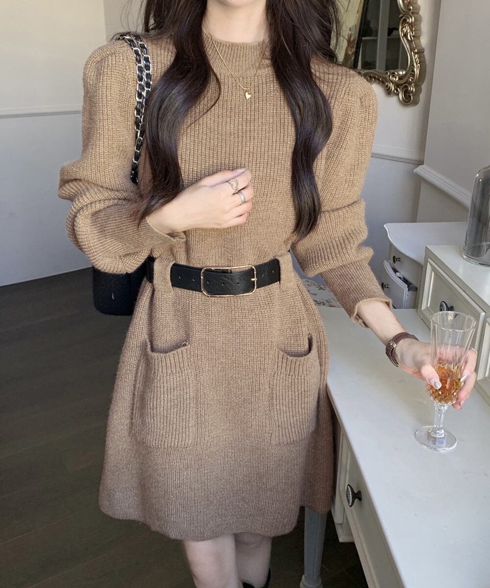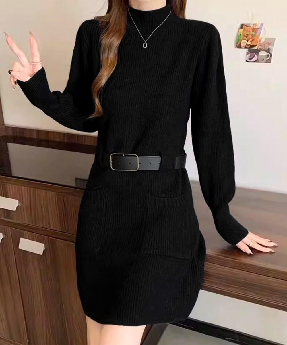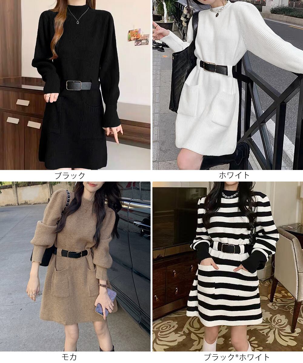 【日本倉庫即納】 ベルト付きニットワンピースウエストマーク