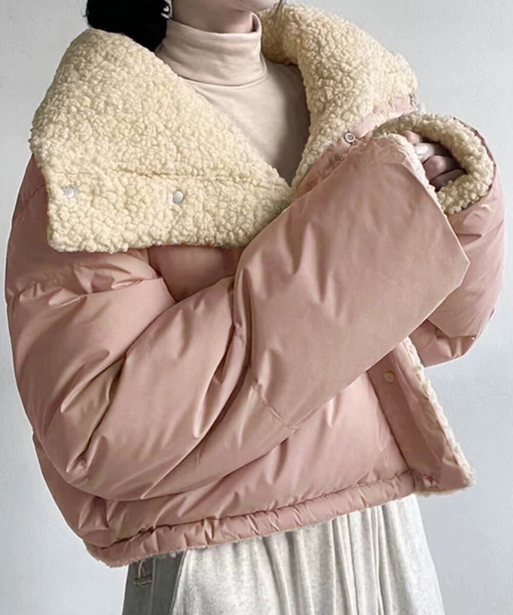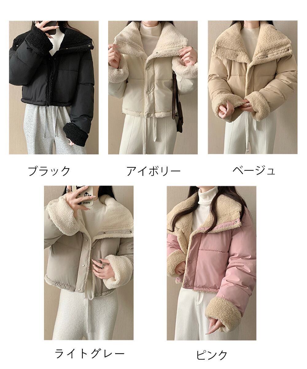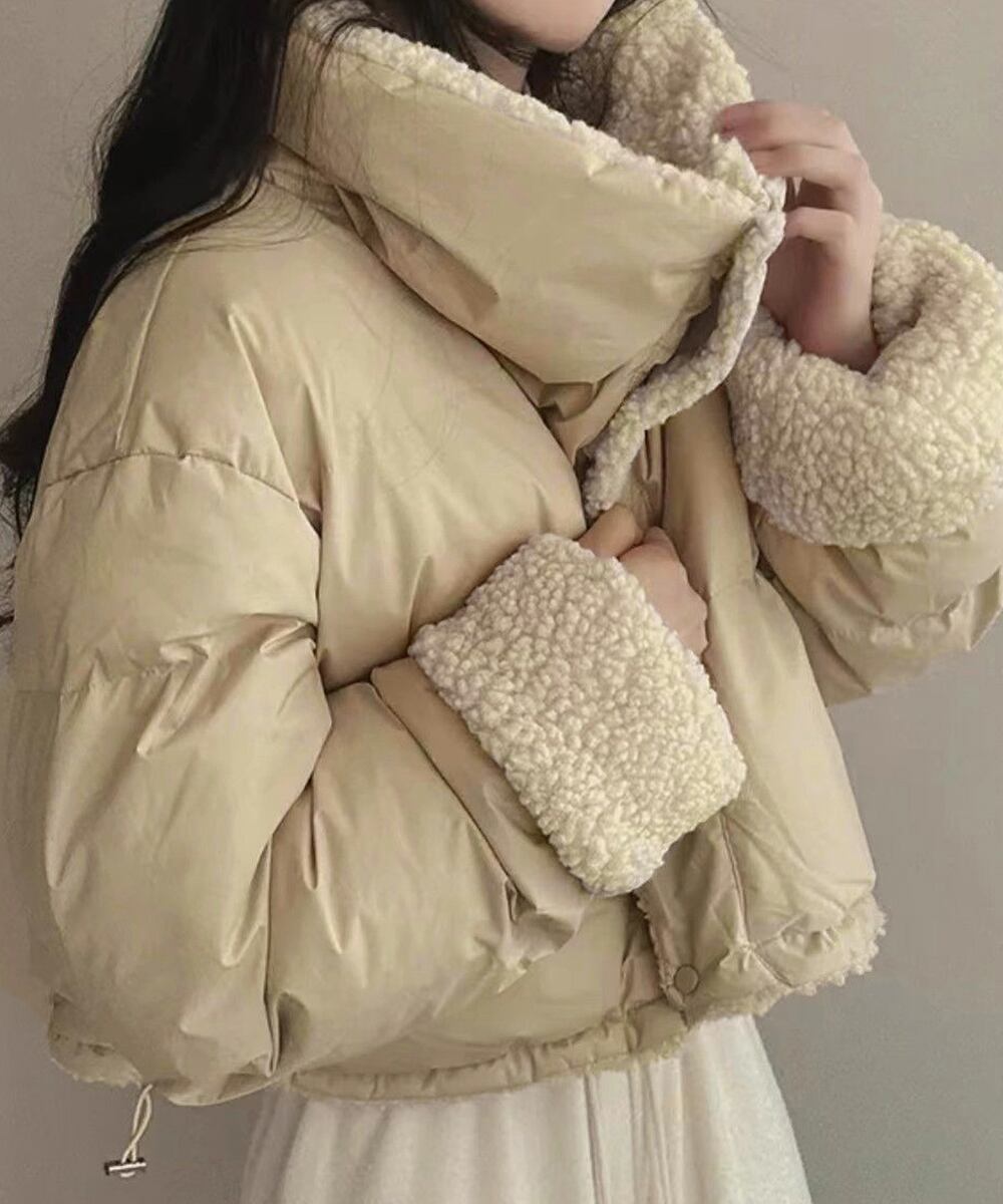 クロップド エコダウンジャケット ショート丈中綿コートレディース ふわふわ ボアアウター暖かい 韓国風 防寒冬服ゆったり