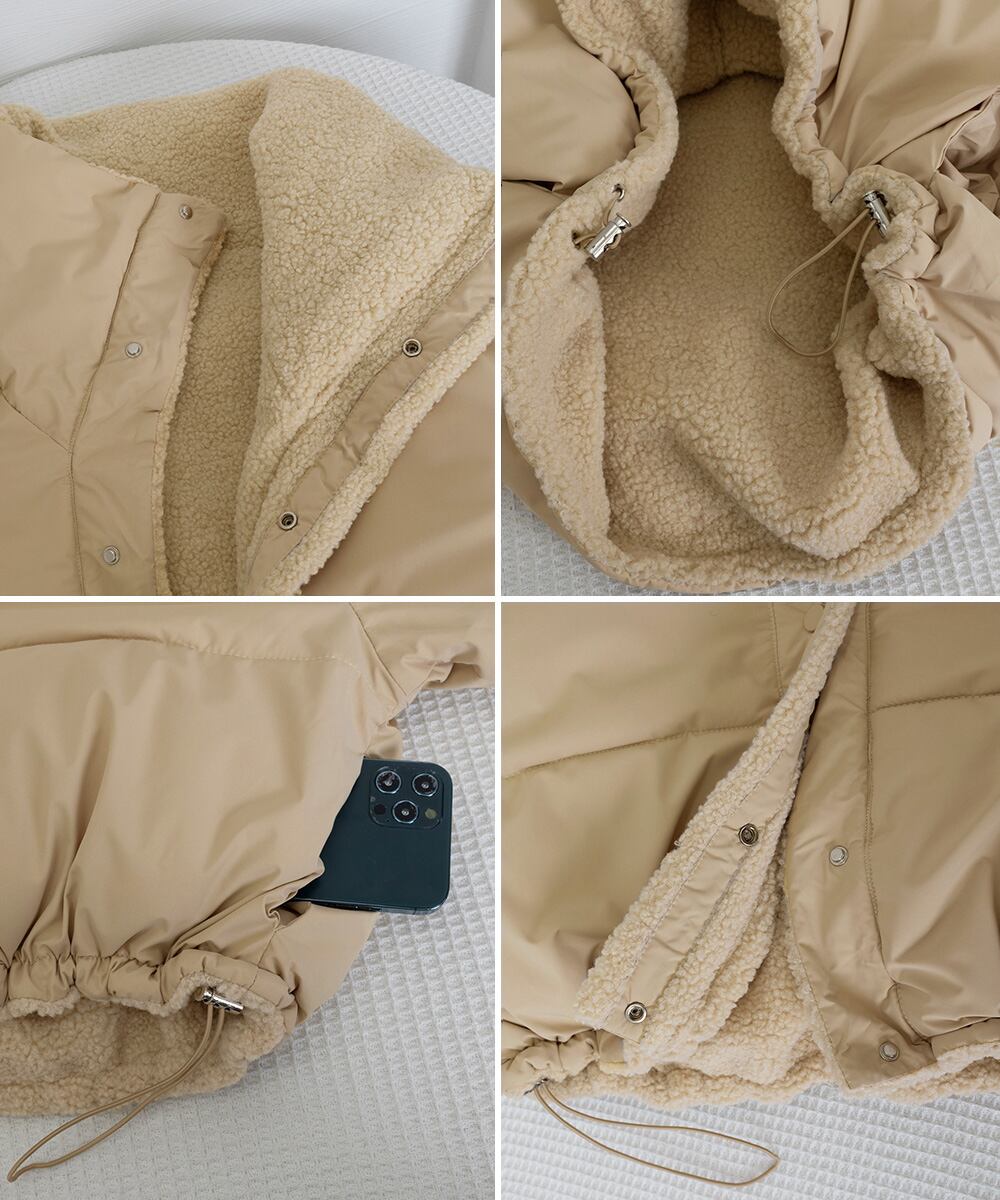 シンプルで洗練されたデザインと、ふわふわのボア素材が魅力のリバーシブルジャケット。