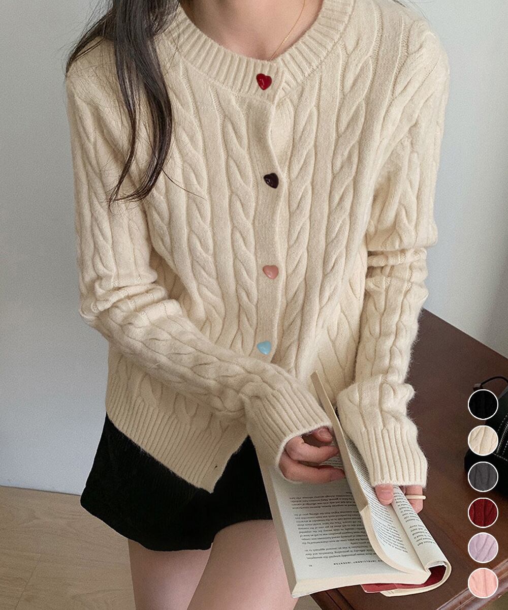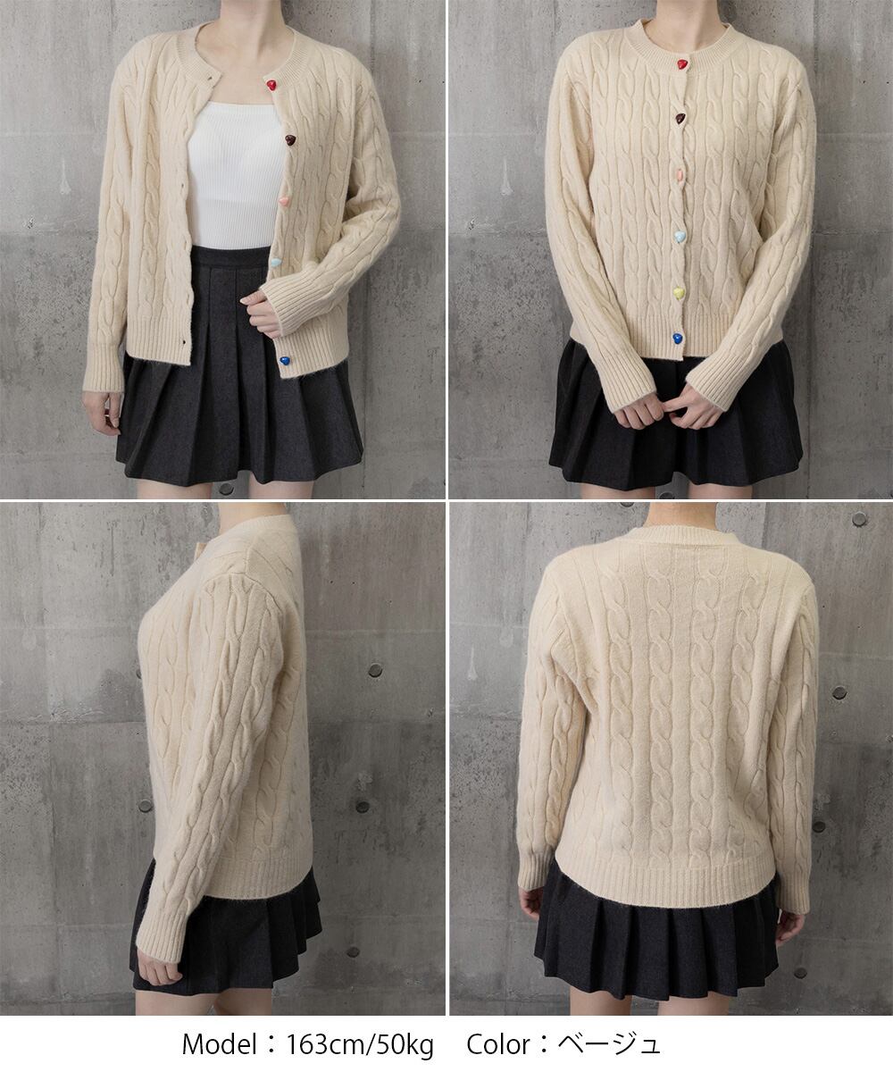 【日本倉庫即納】 ケーブルニットカーディガン 前開きニット