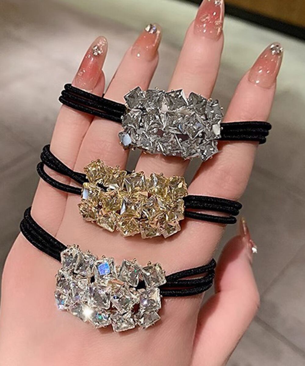ヘアアクセサリーヘアゴム ヘアポニー ラインストーンビジュー 幾何学モチーフ 髪飾りヘアアレンジグッズ 韓国ファッション