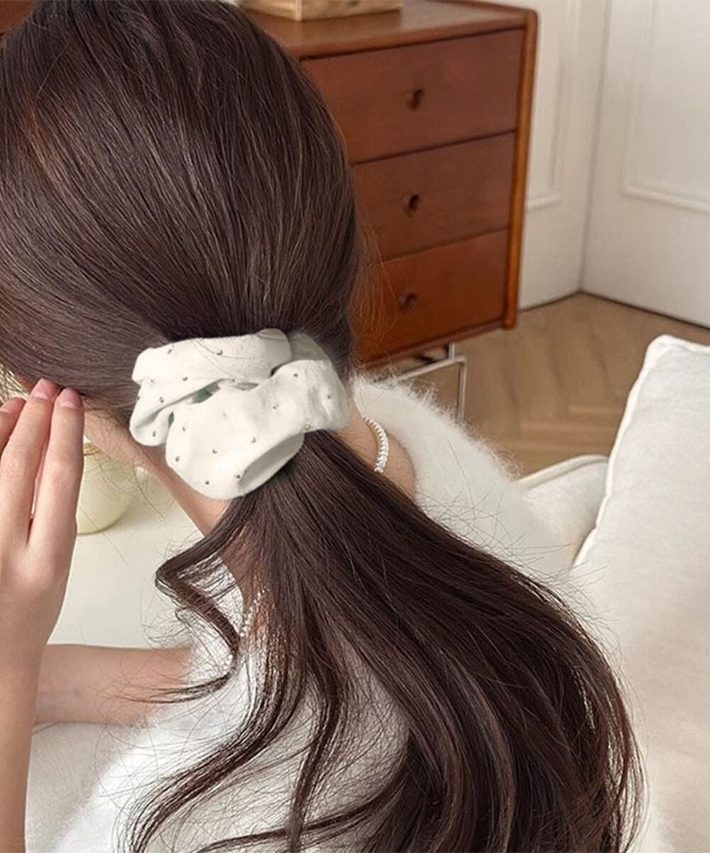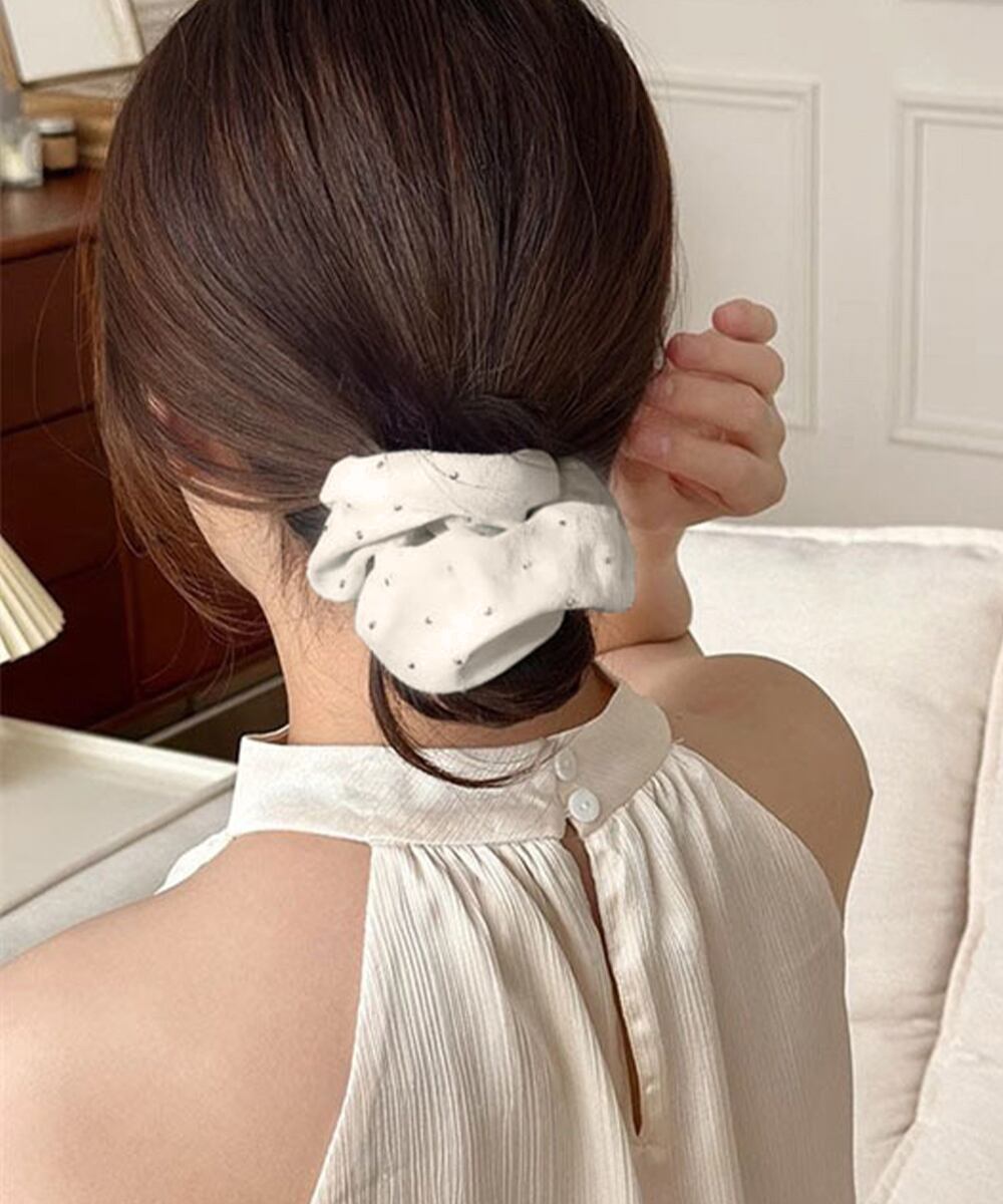 小さなキラキラパーツが輝くシュシュ。