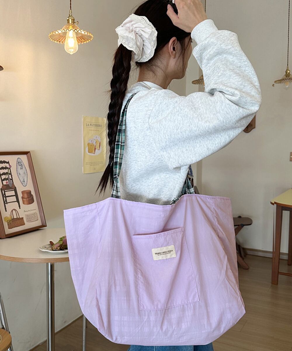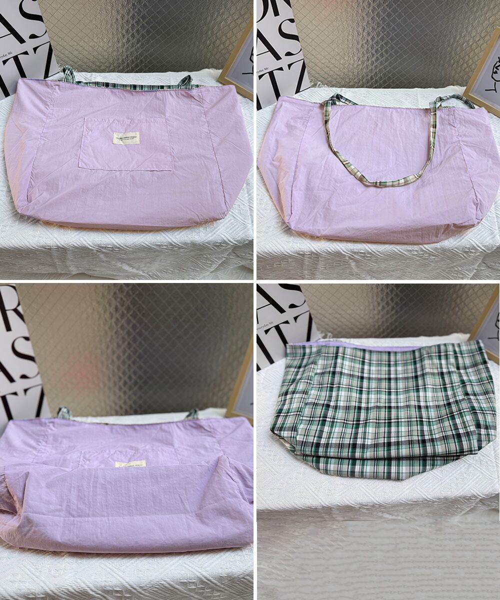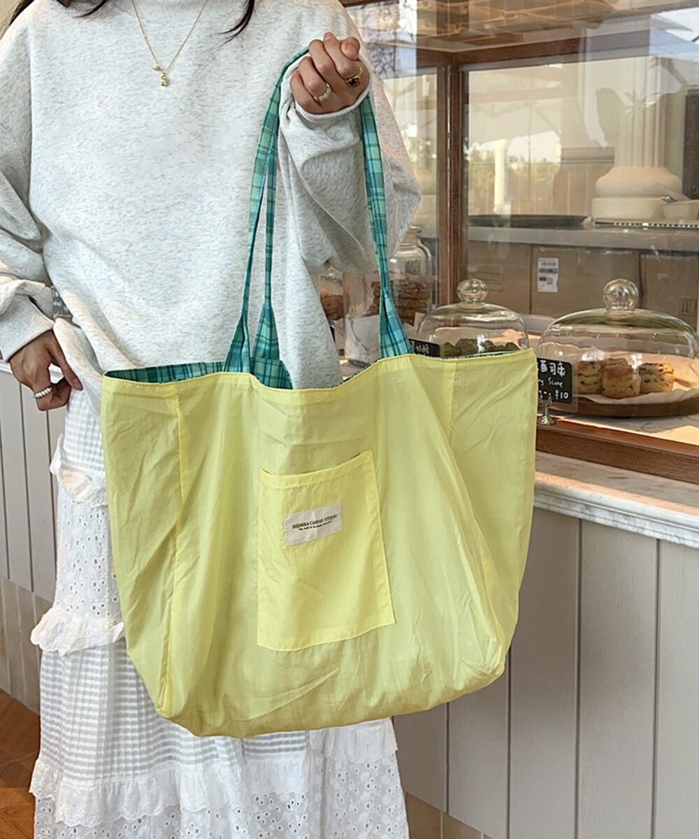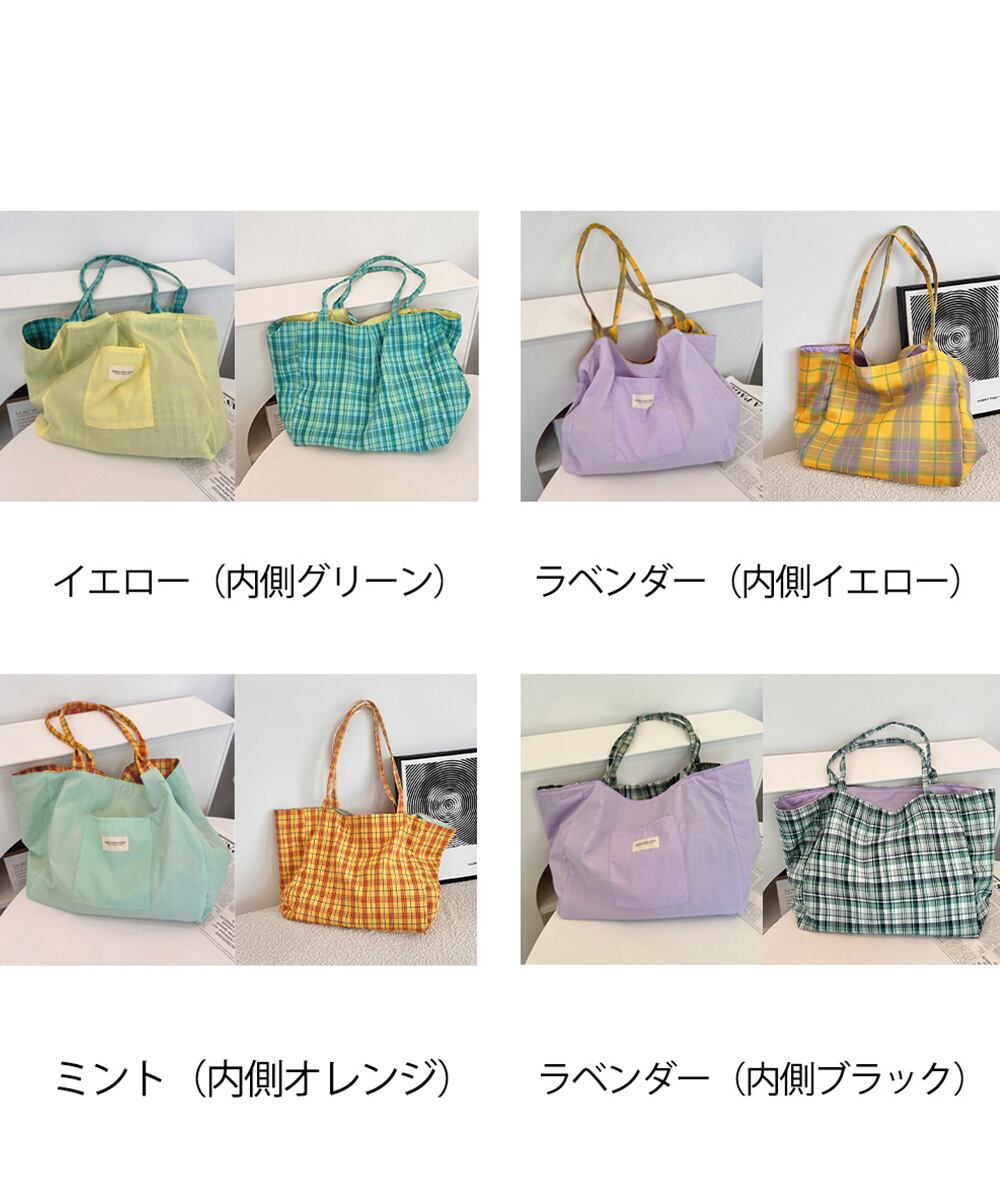 タータンチェック鞄 エコバッグ 軽量 両面用肩掛けカバン
