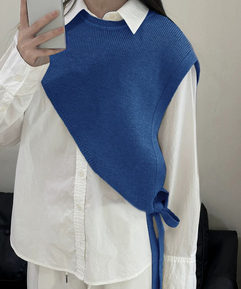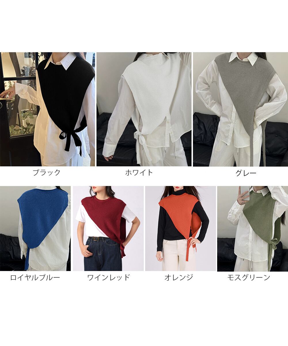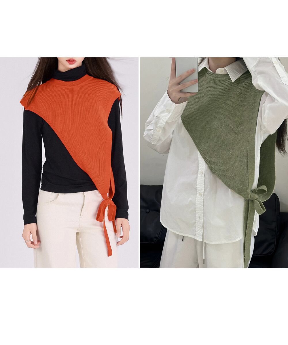 【日本倉庫即納】 三角ニットベスト 重ね着 肩掛け風ニット