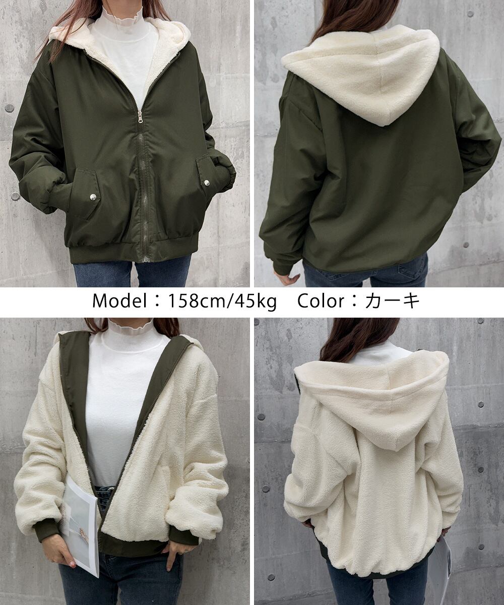 2WAYアウター冬 両面着用可能 厚手 裏起毛 ボアコート