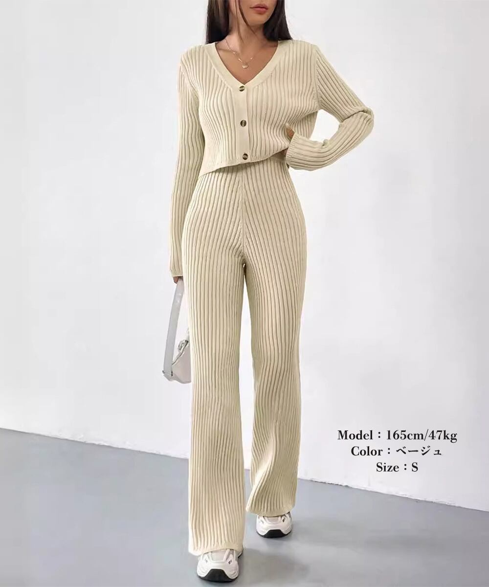 【日本倉庫即納】 ニットセットアップ トップス パンツ