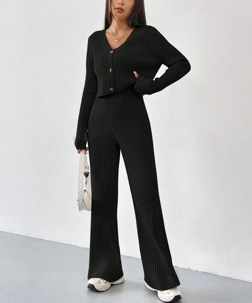 レディース ニットカーディガン ストレッチパンツ ハイウエスト 編み ゆったり オルチャン お洒落 オフィスカジュアル