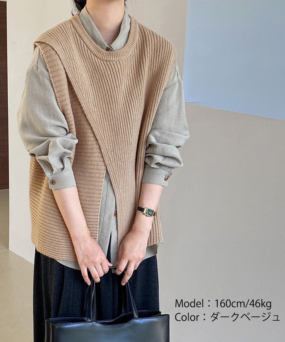 袖なしニット着やせ 体型カバートップス 秋冬レイヤードジレ