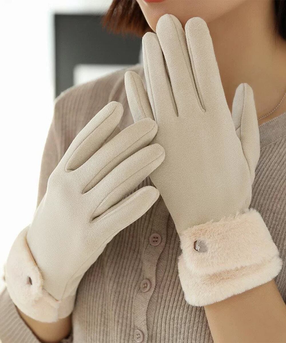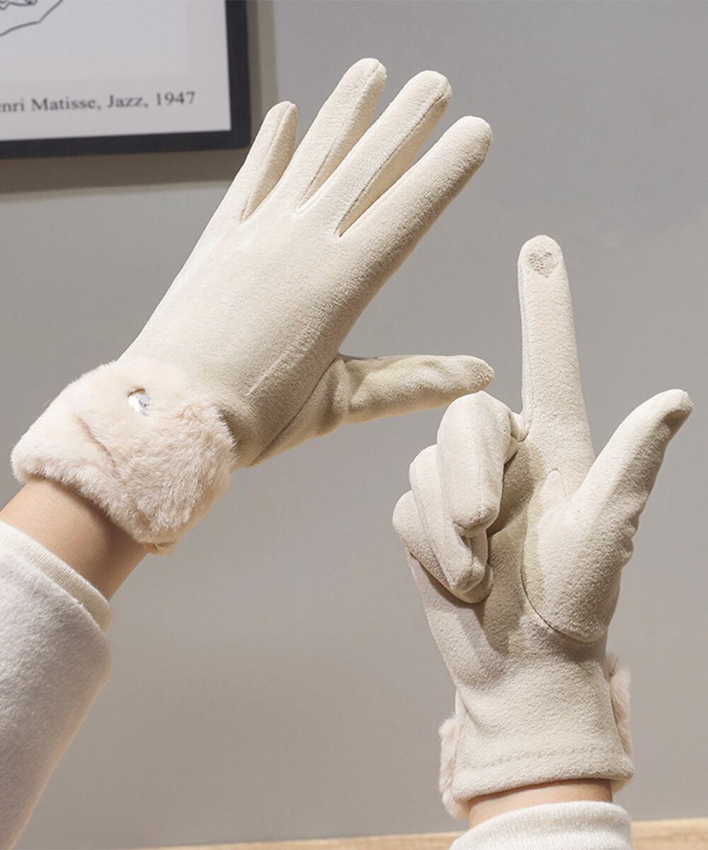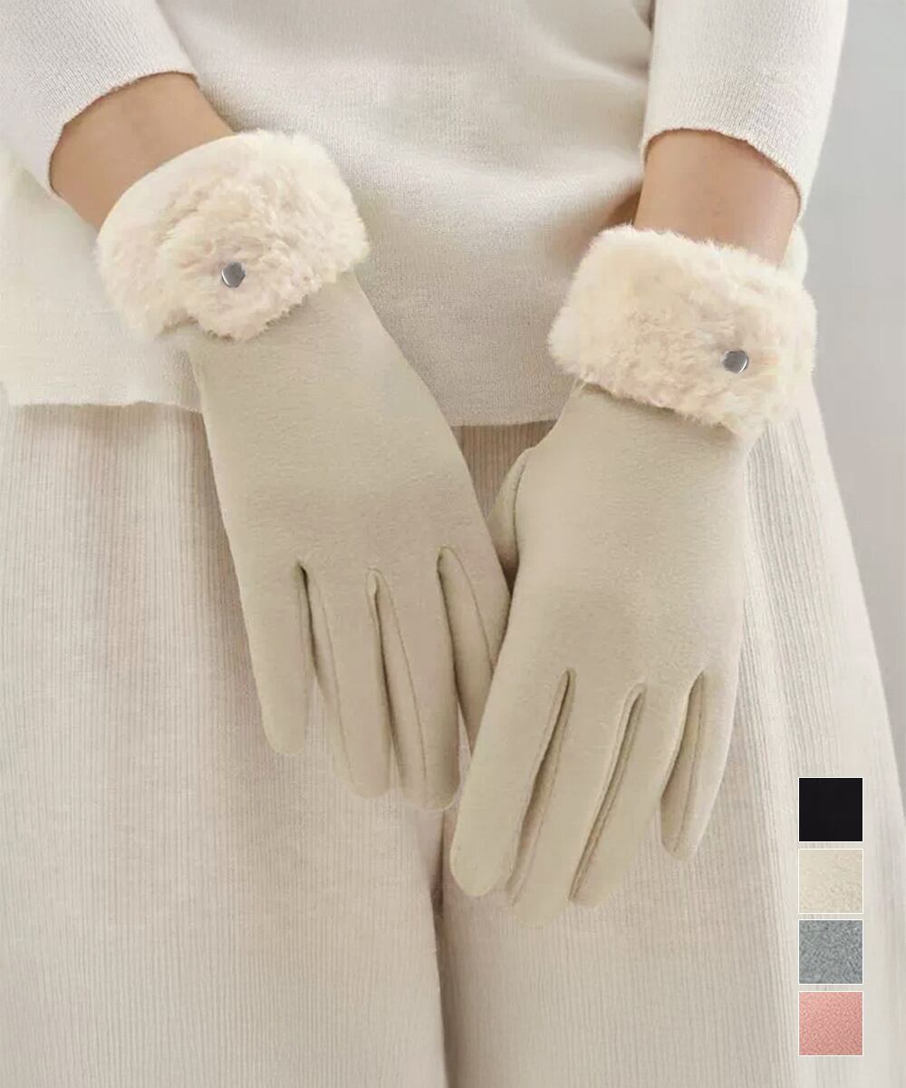 やわらかなスエード調素材にファーをあしらった、タッチパネル対応のあったか手袋。