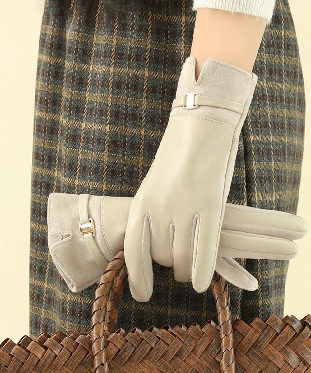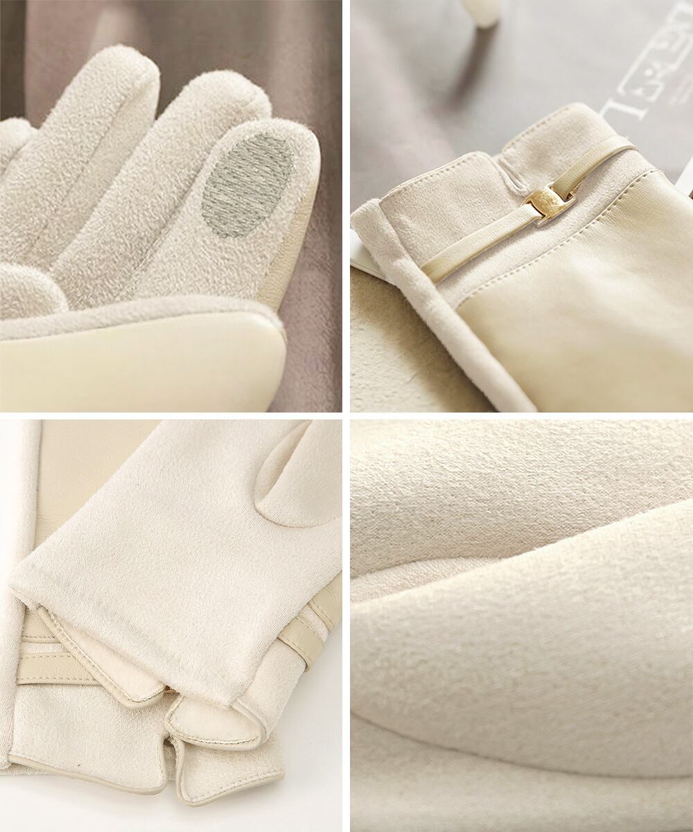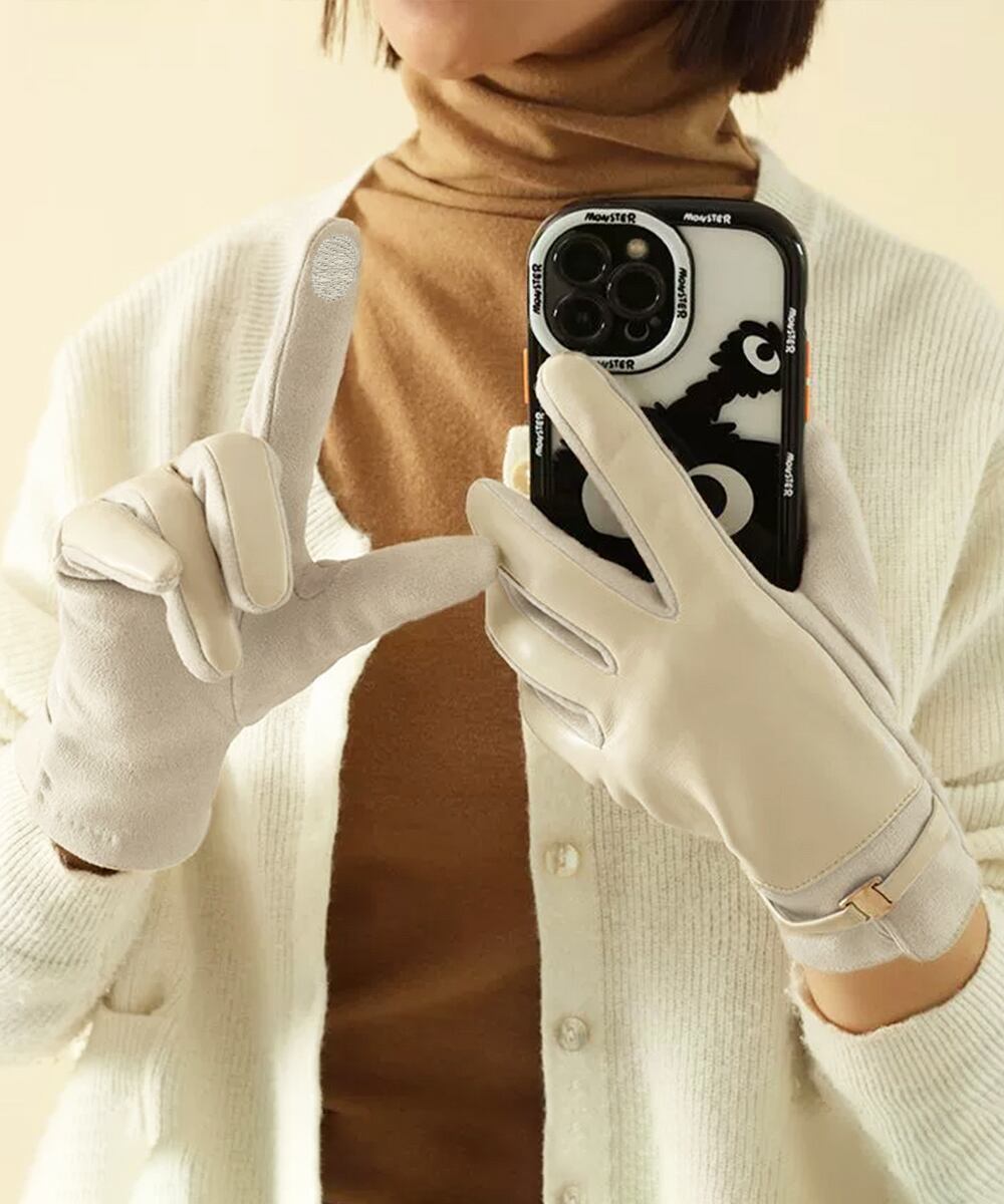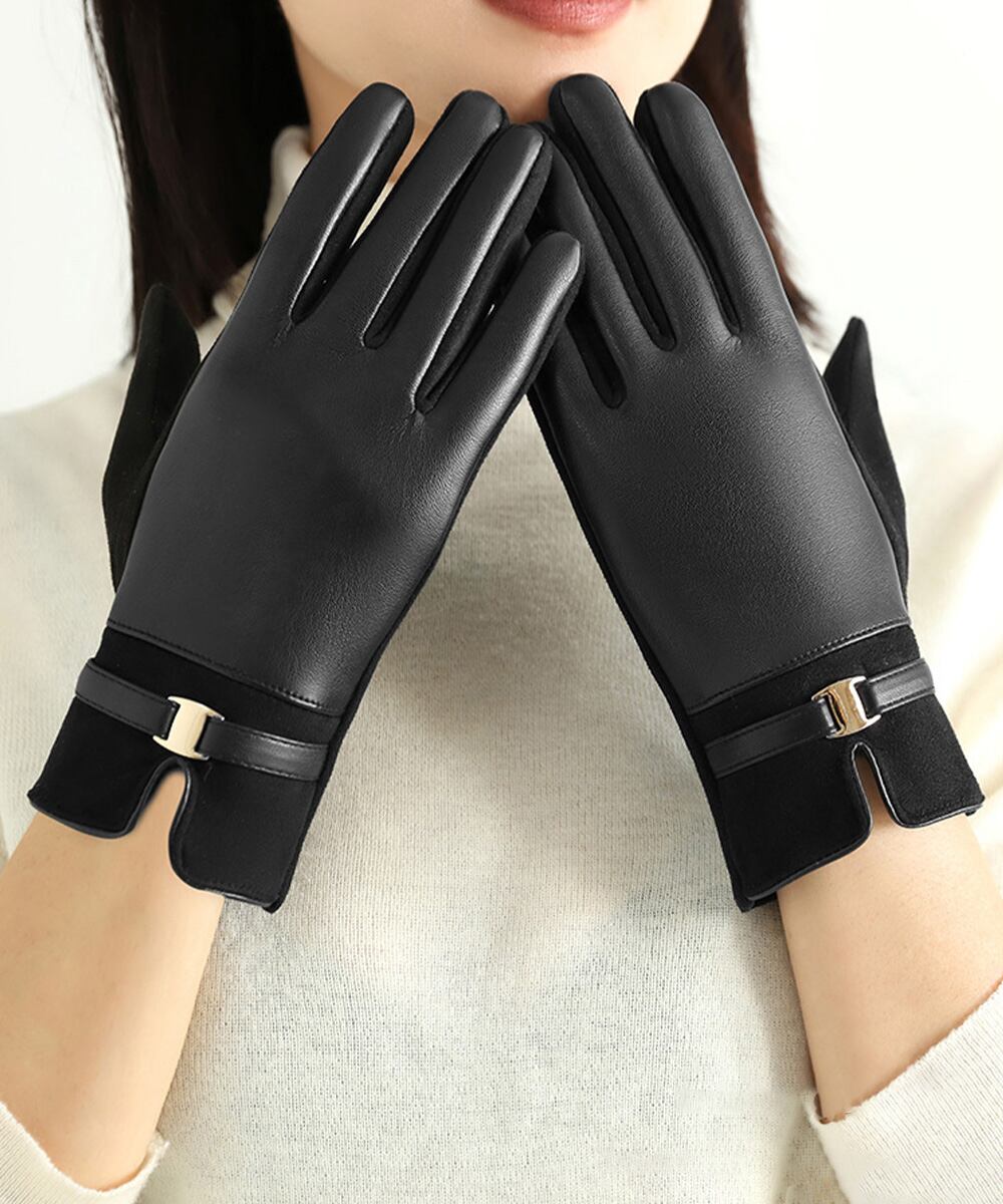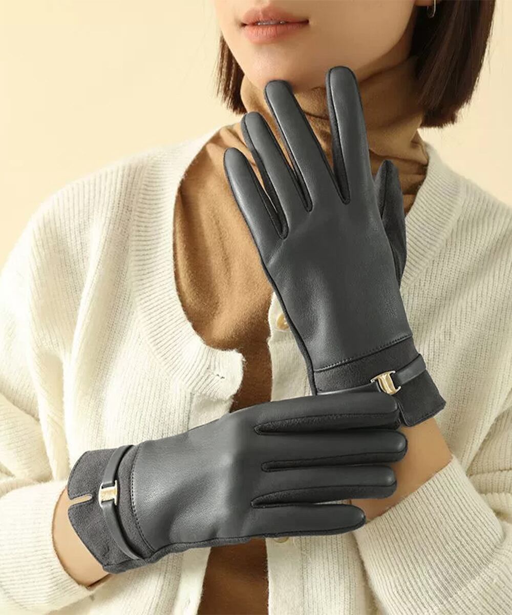 スエード調とレザーの切り替えが上品な印象を与える裏起毛の手袋。
