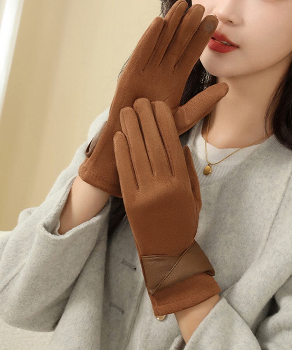 上品なシャムードとフェイクレザー異素材ミックスの裏起毛手袋。
