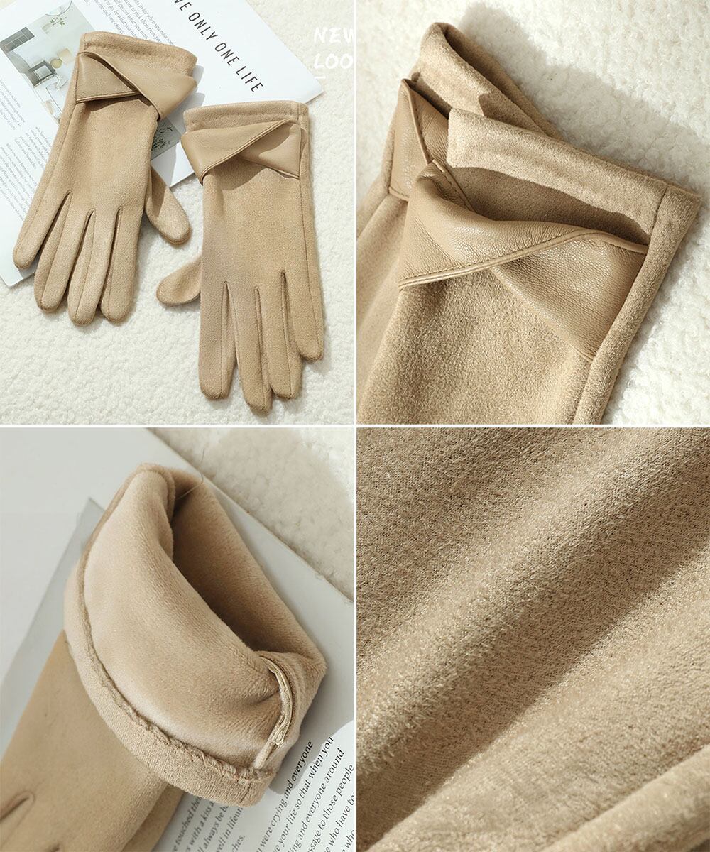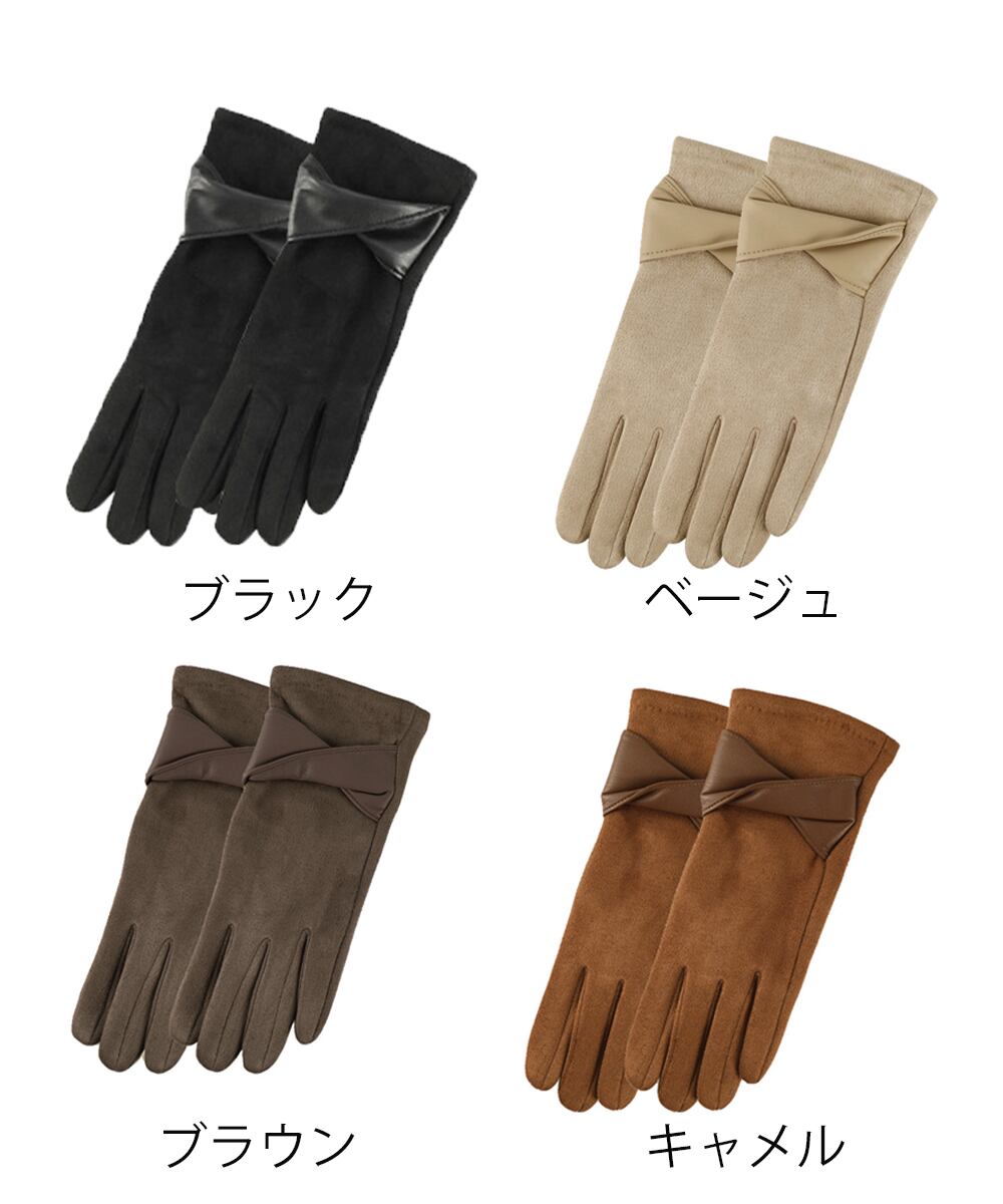 【日本倉庫即納】 スエード調手袋裏起毛 リボン付き手袋防寒