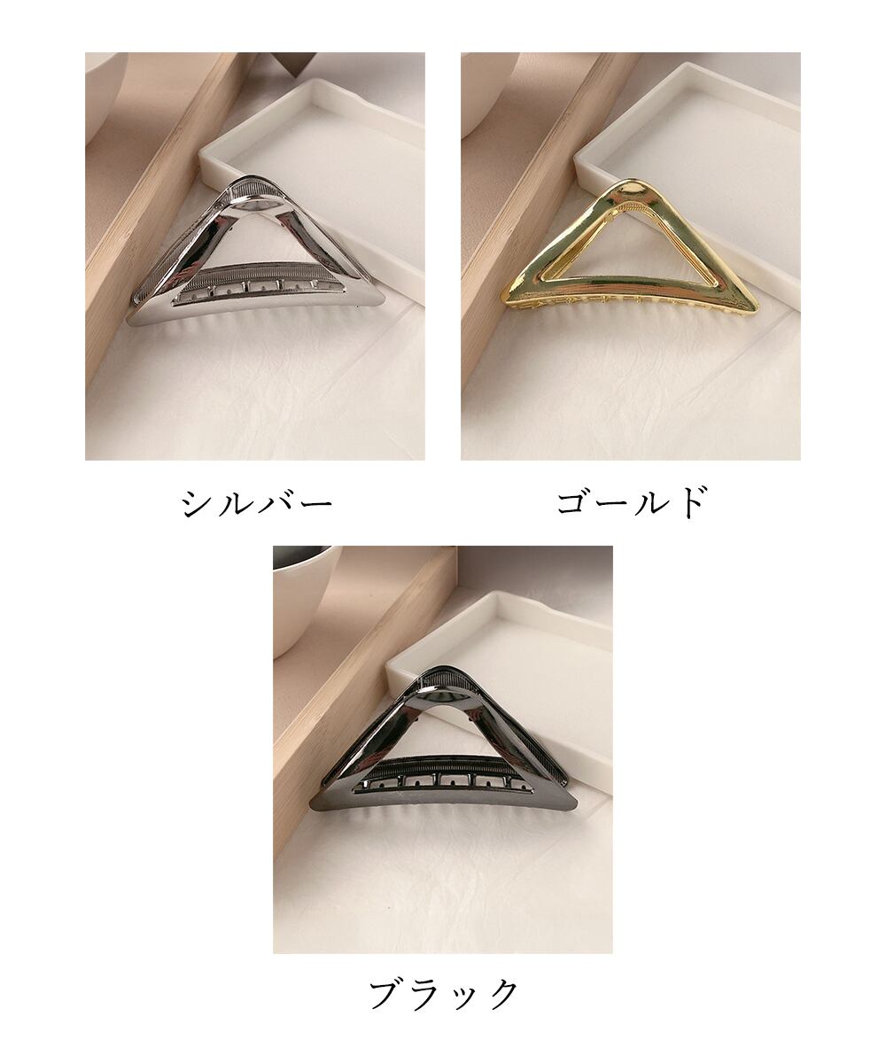 シンプルながら存在感のある三角形メタルヘアクリップ。