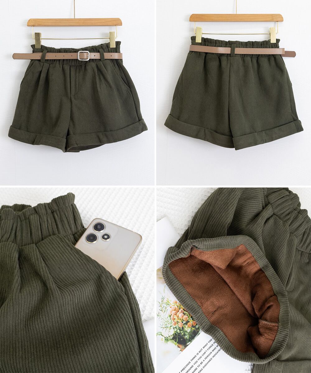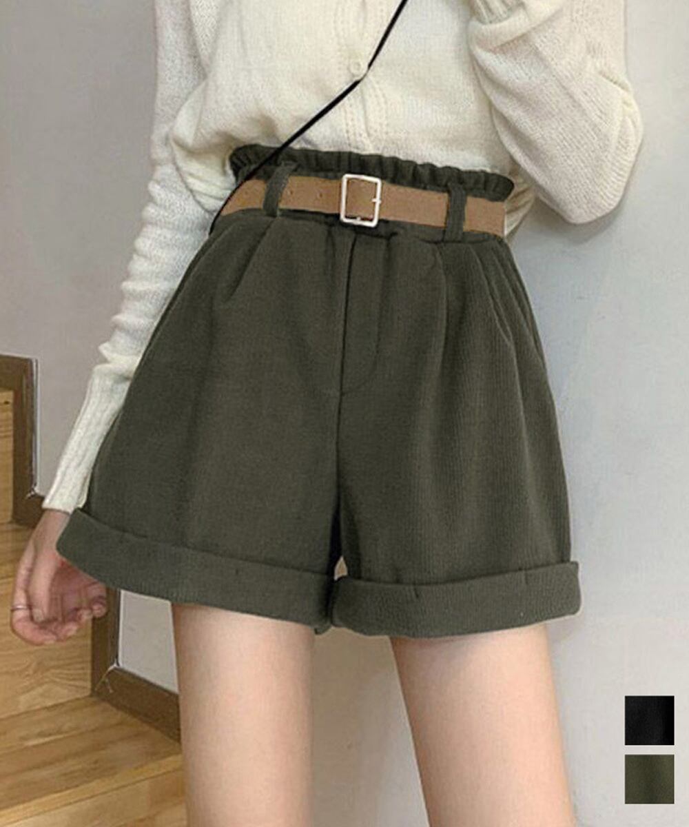 【日本倉庫即納】 ベルト付き ショートパンツ コーデュロイ