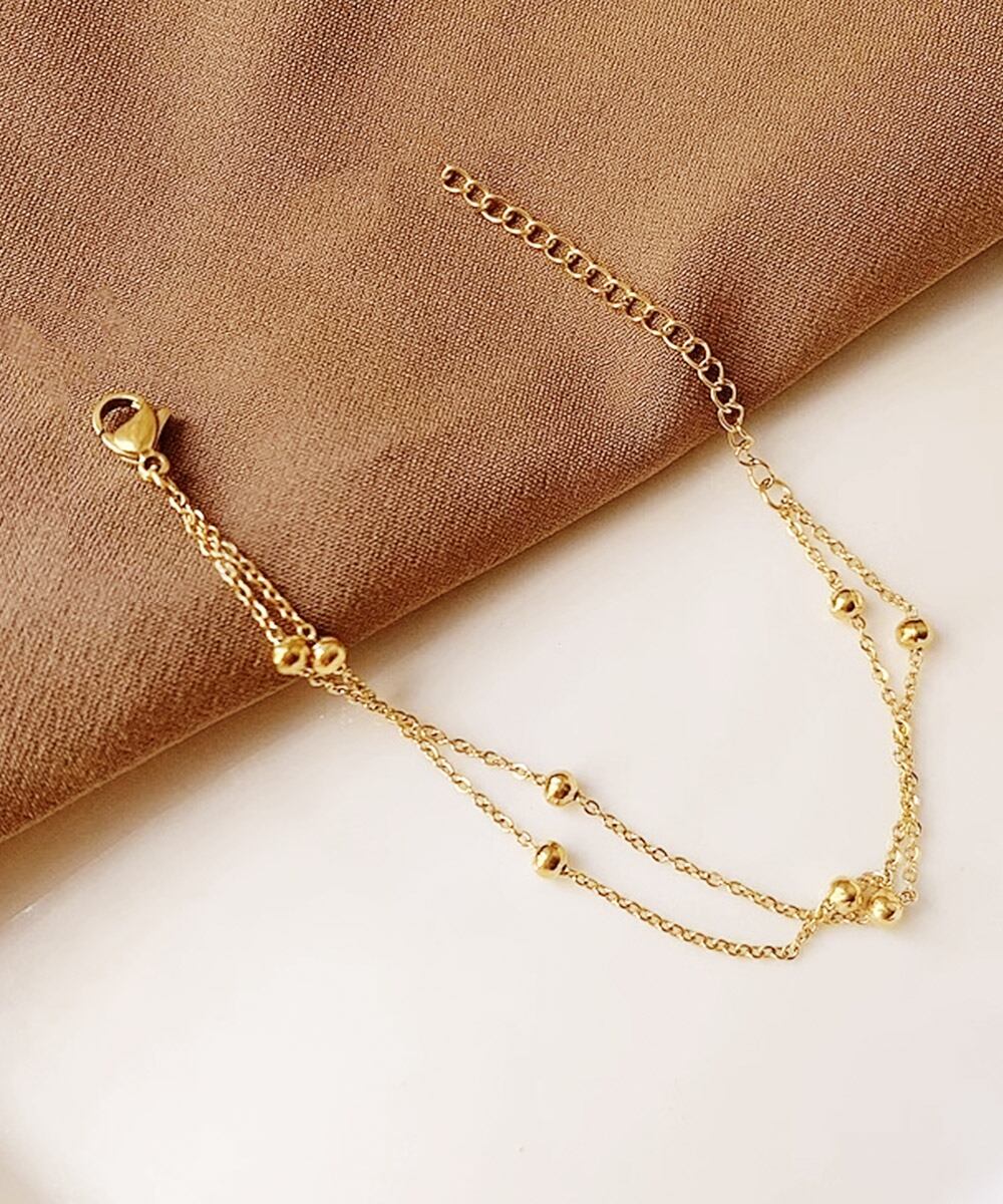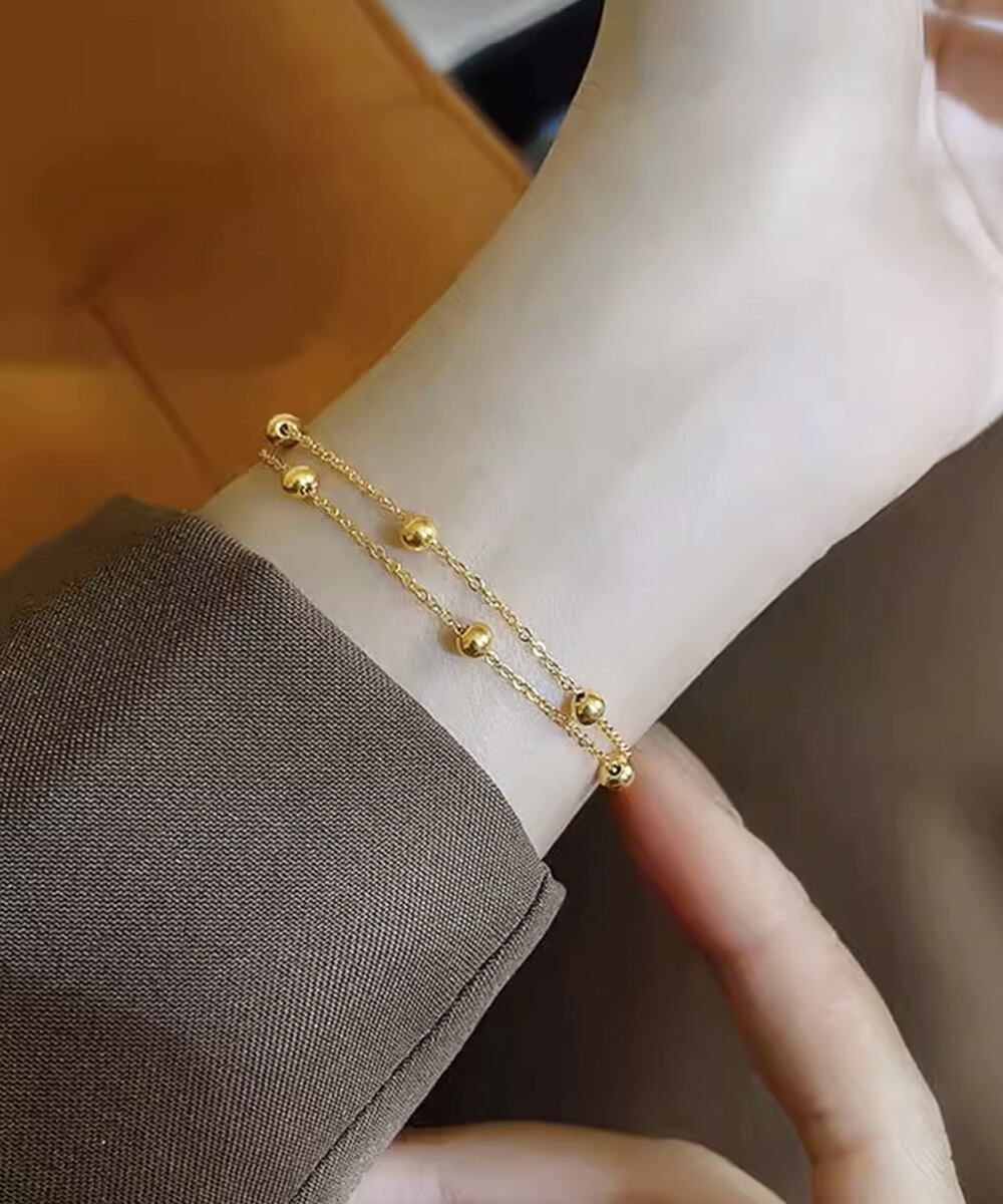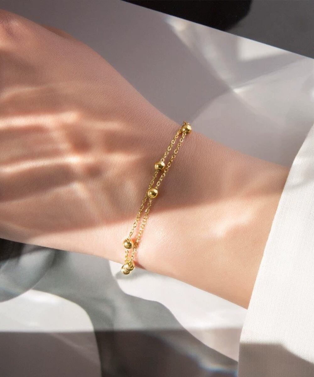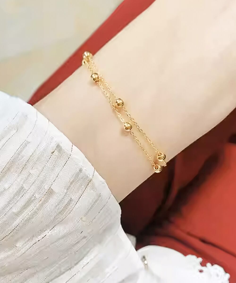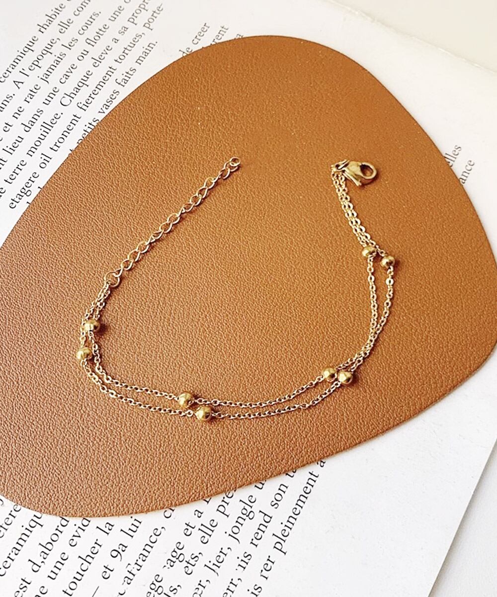 繊細なチェーンに小さなボールモチーフをあしらった2連ゴールドブレスレット。