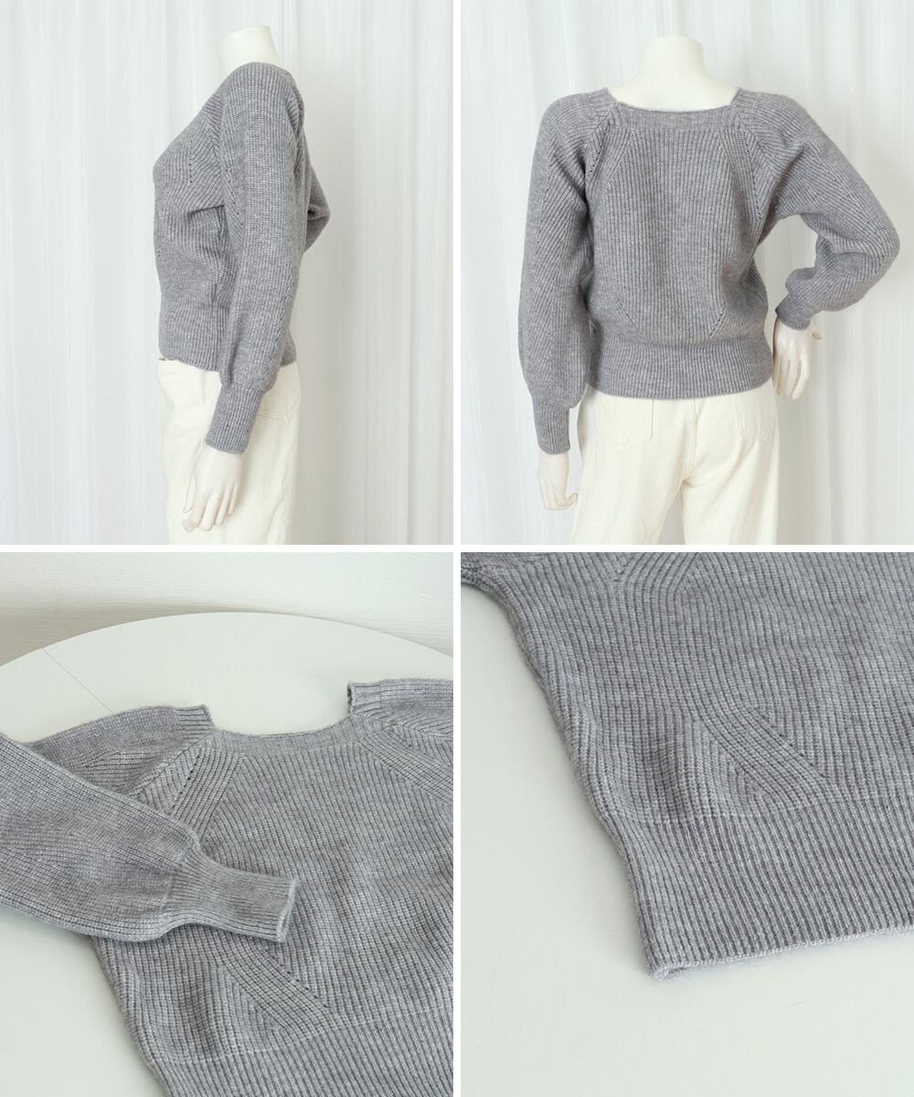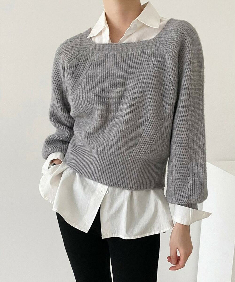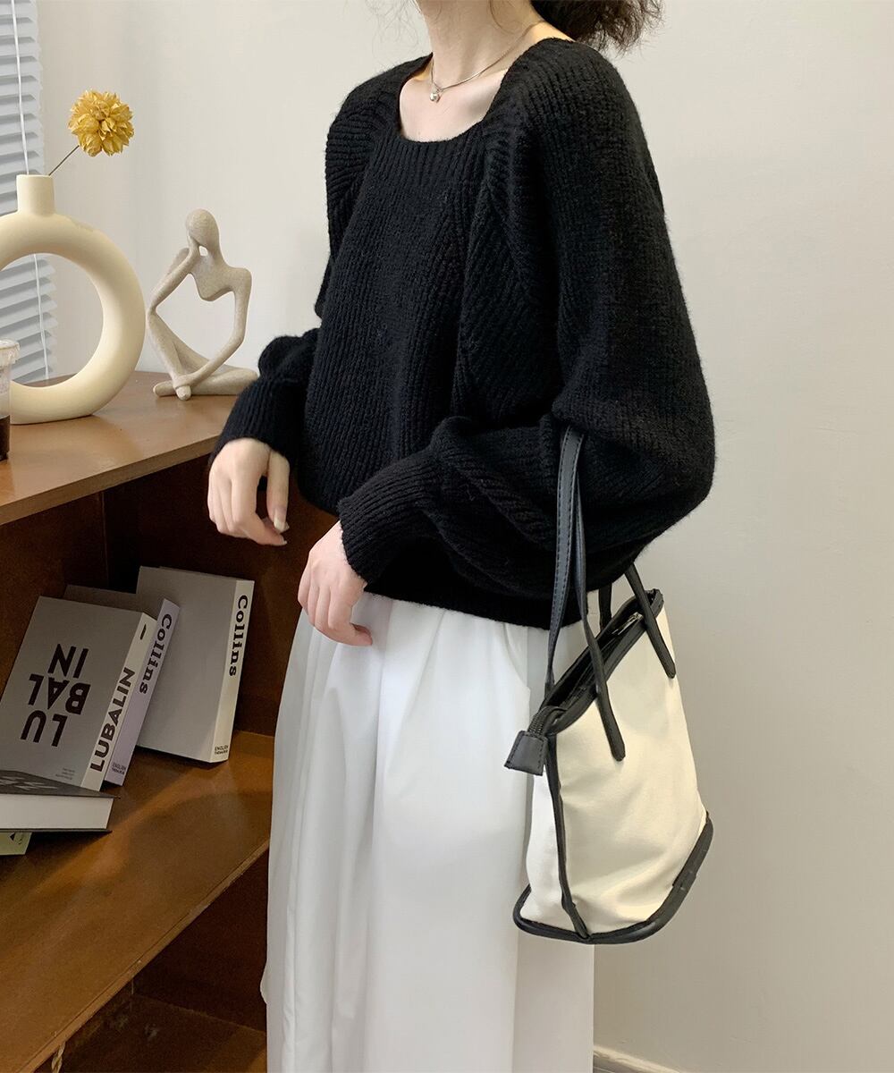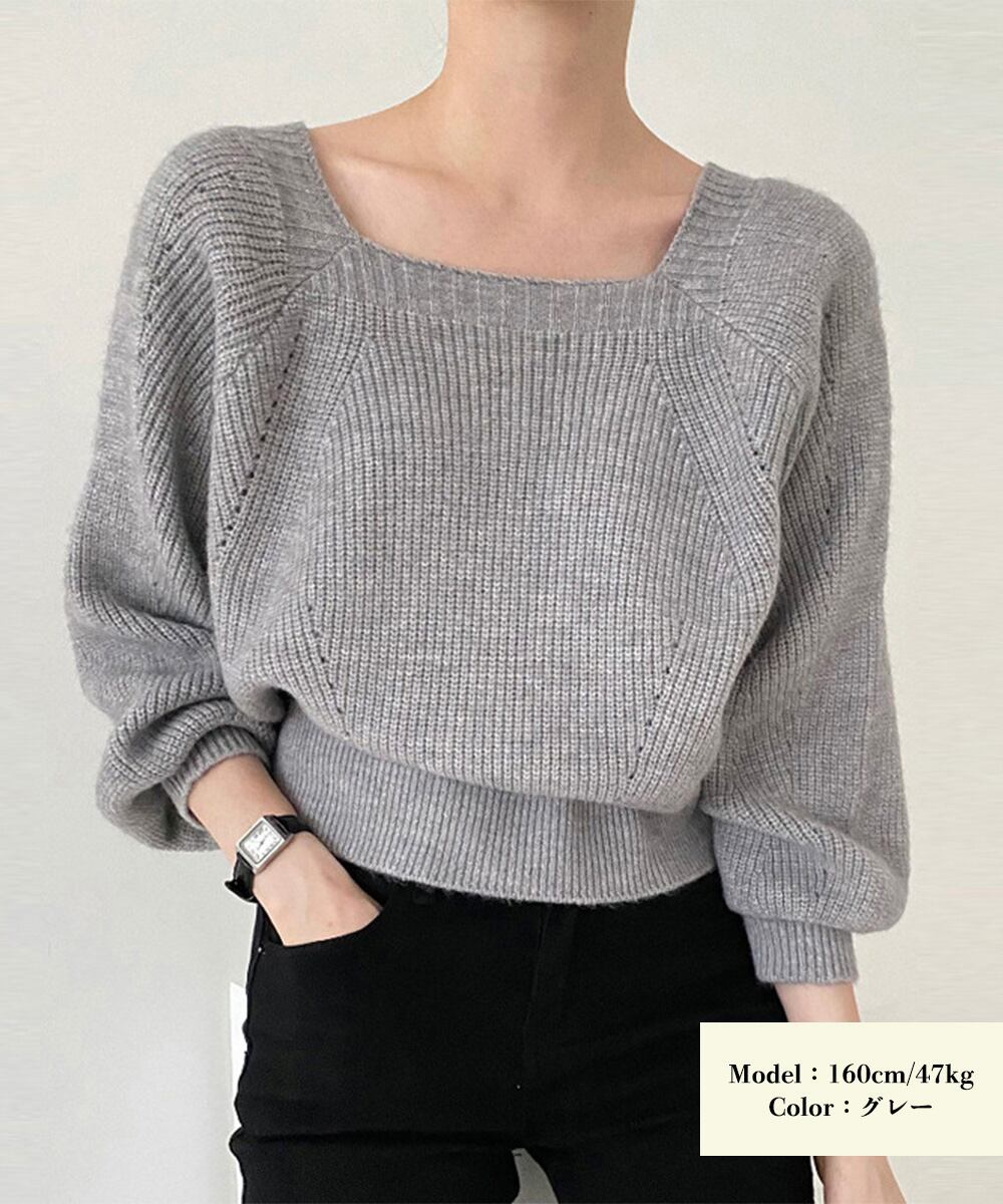 セーター プルオーバー ニットソー スクエアネック 編み オフィス カジュアル 大人 フェミニン シンプル