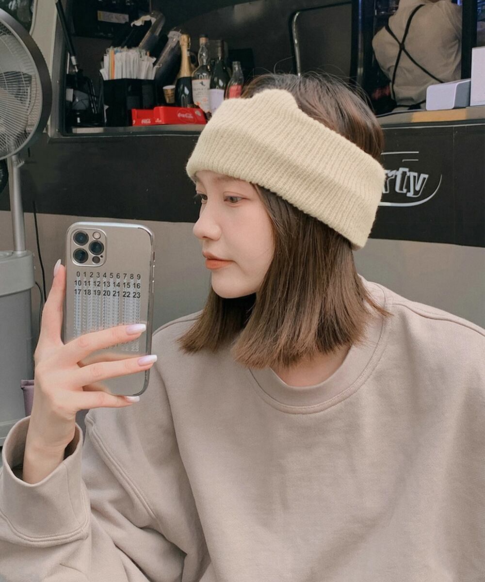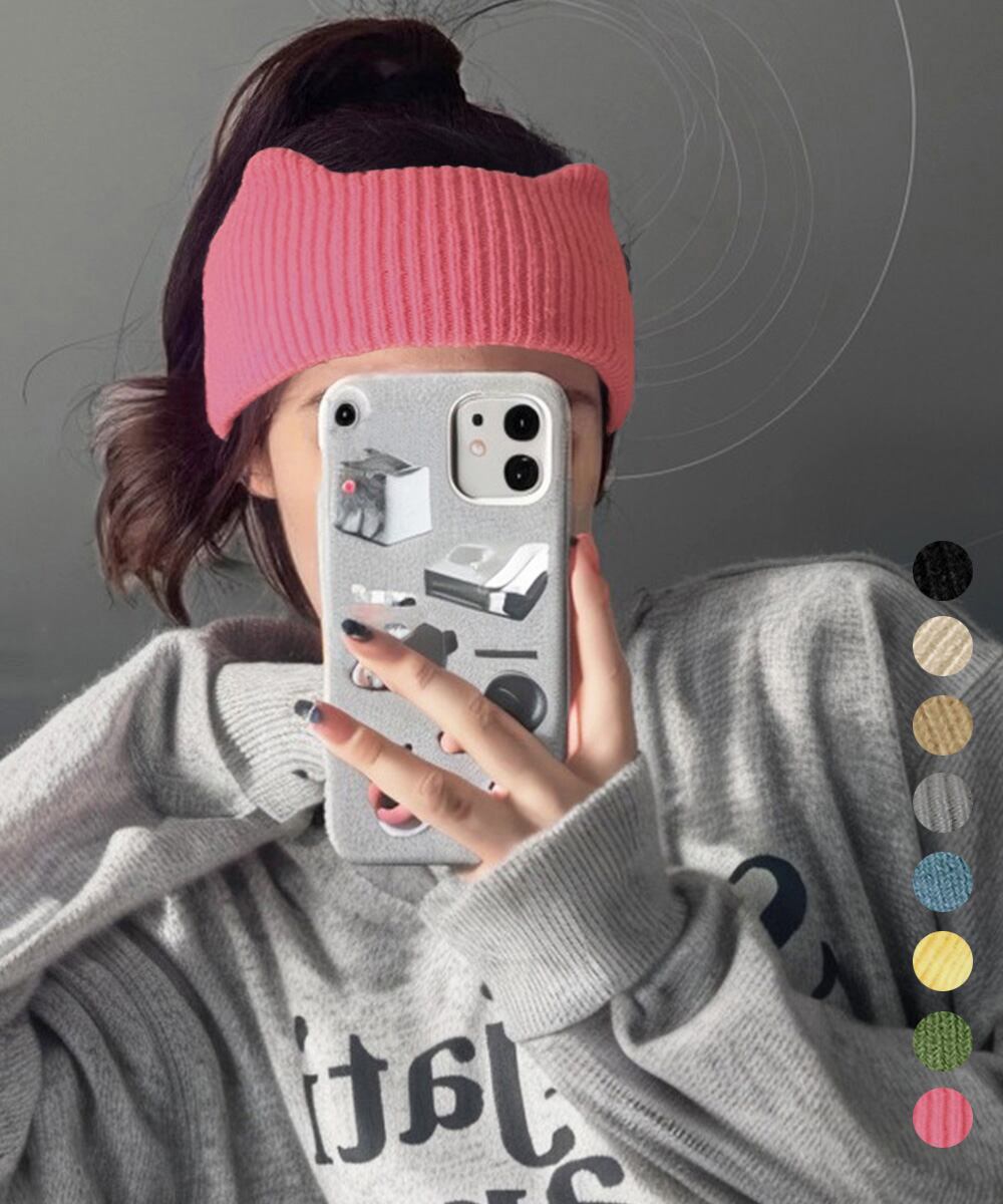 猫耳風デザインがキュートな、幅広タイプのニットヘアバンド。