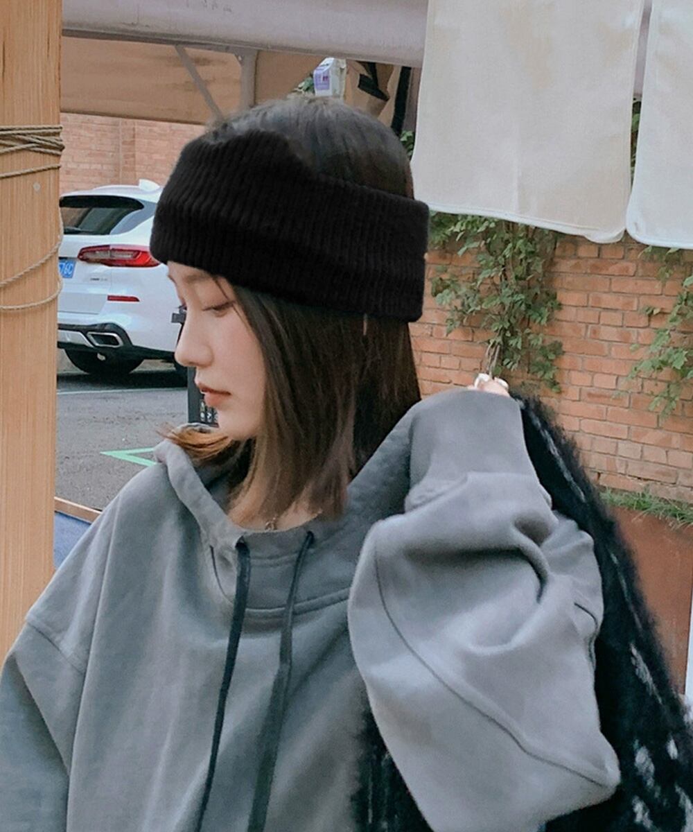 【日本倉庫即納】 猫耳リブニットヘアバンド 幅広い 髪留め