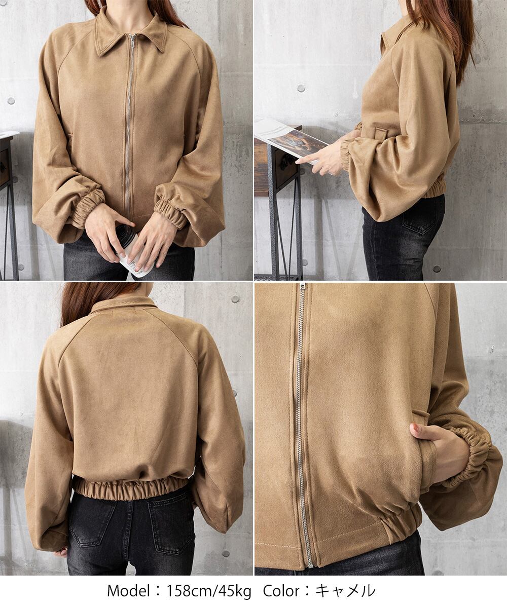 体型カバー 着やせ ジッパージャケット スエードアウター春