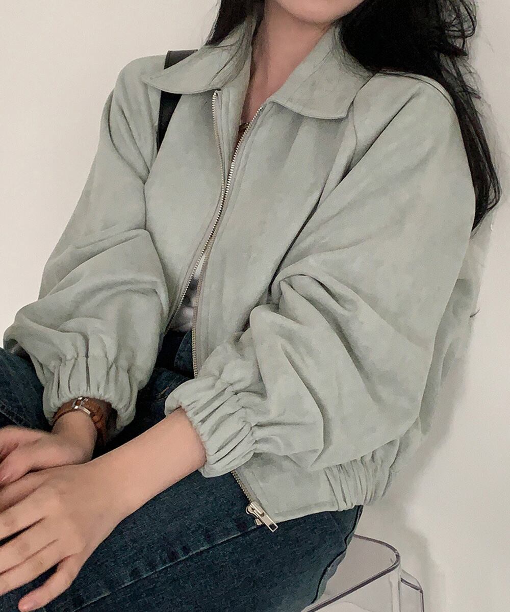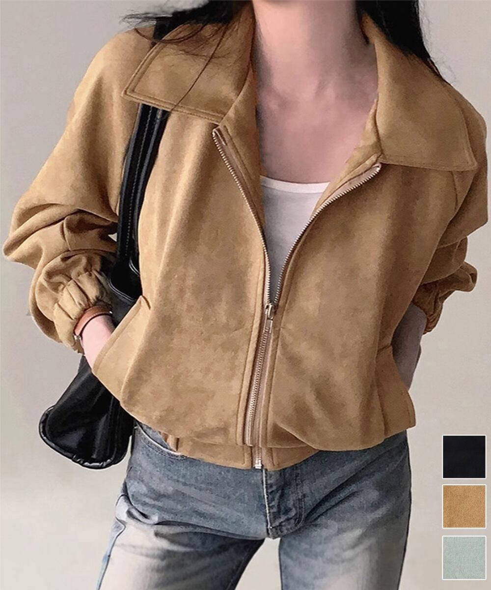 柔らかいマイクロスエード調素材で、手触り抜群のショート丈レディースジャケット。