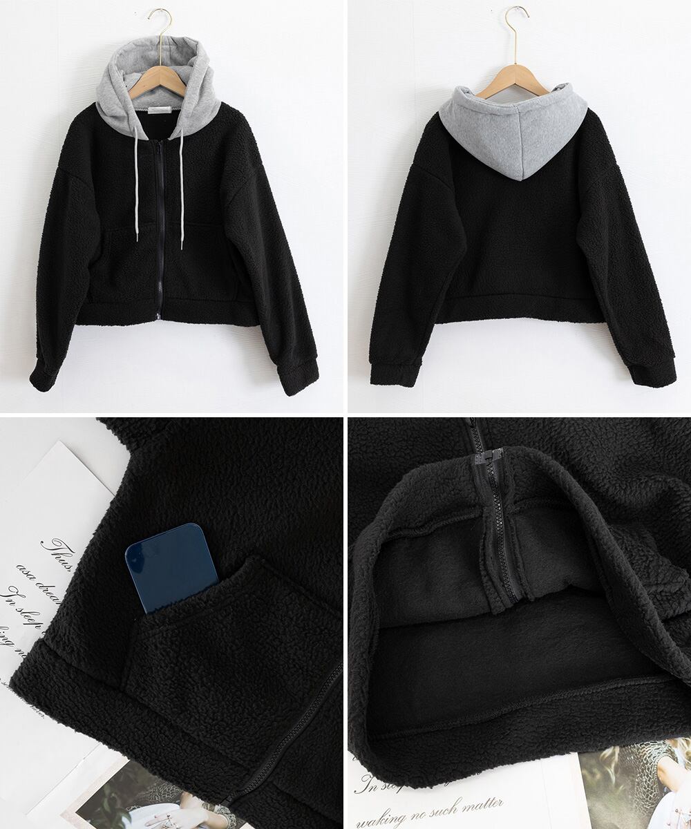 韓国風 ふわふわフーディ ショート丈パーカー レディース クロップド 厚手フリースジャケットもこもこ ライトアウター軽量