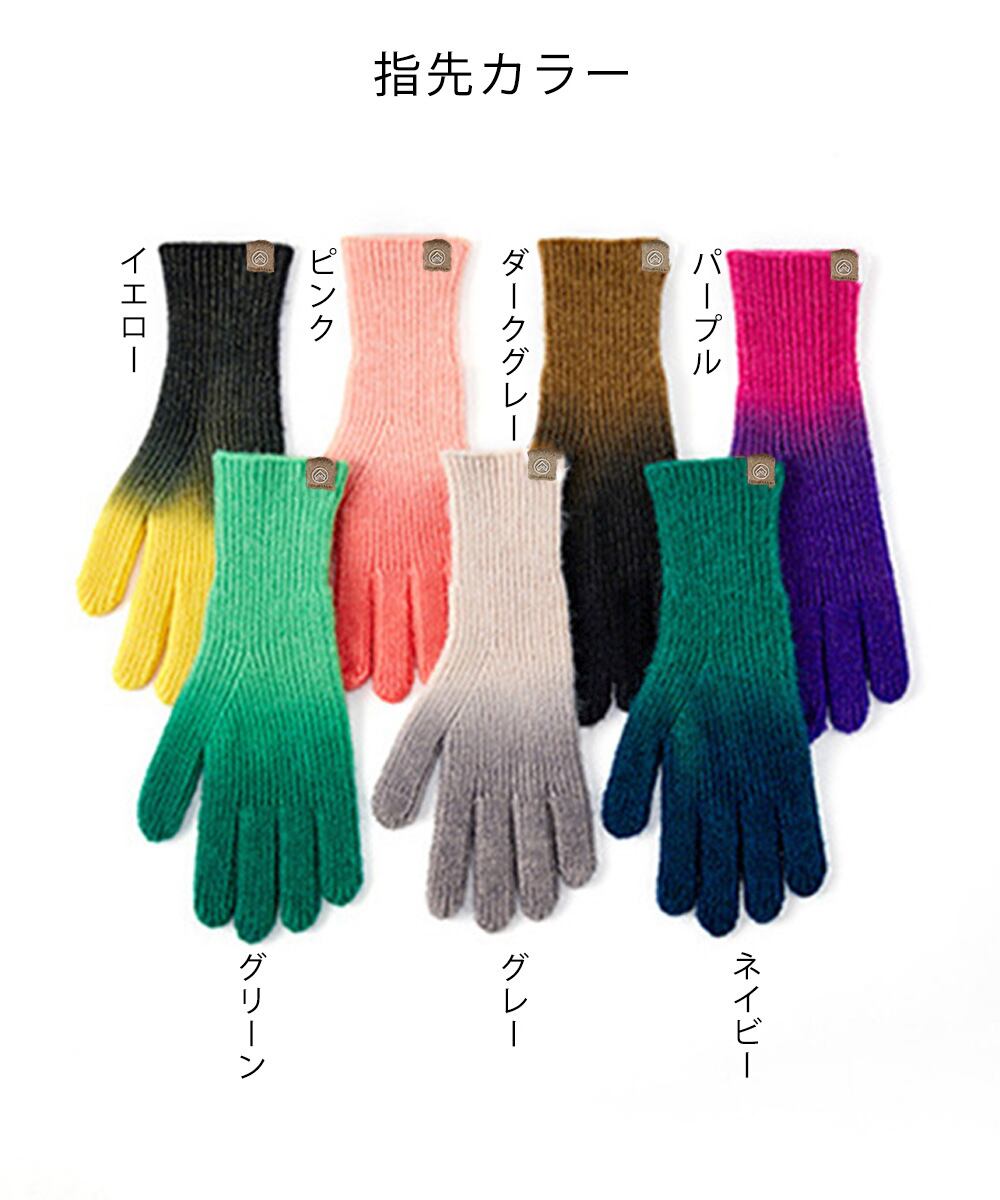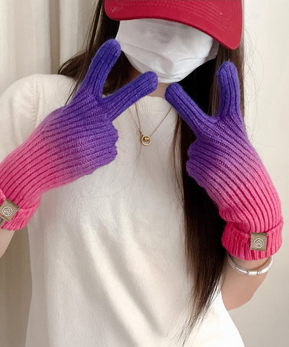 高発色のレインボーカラーグラデーションが目を引くレディースニット手袋。