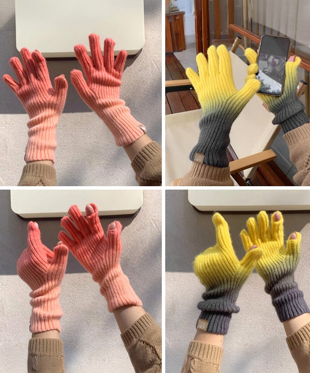 【日本倉庫即納】 グラデーションニット手袋 スマホ対応手袋
