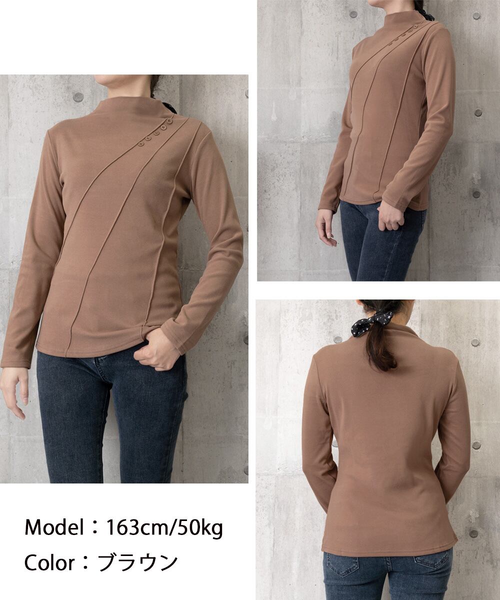 【日本倉庫即納】 カットソー プチハイネック 長袖Tシャツ