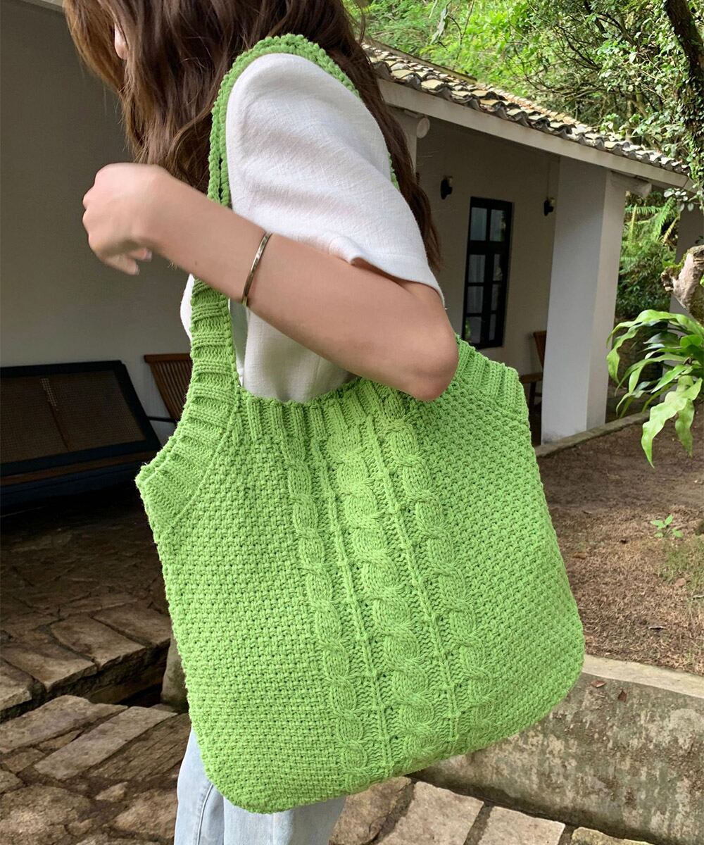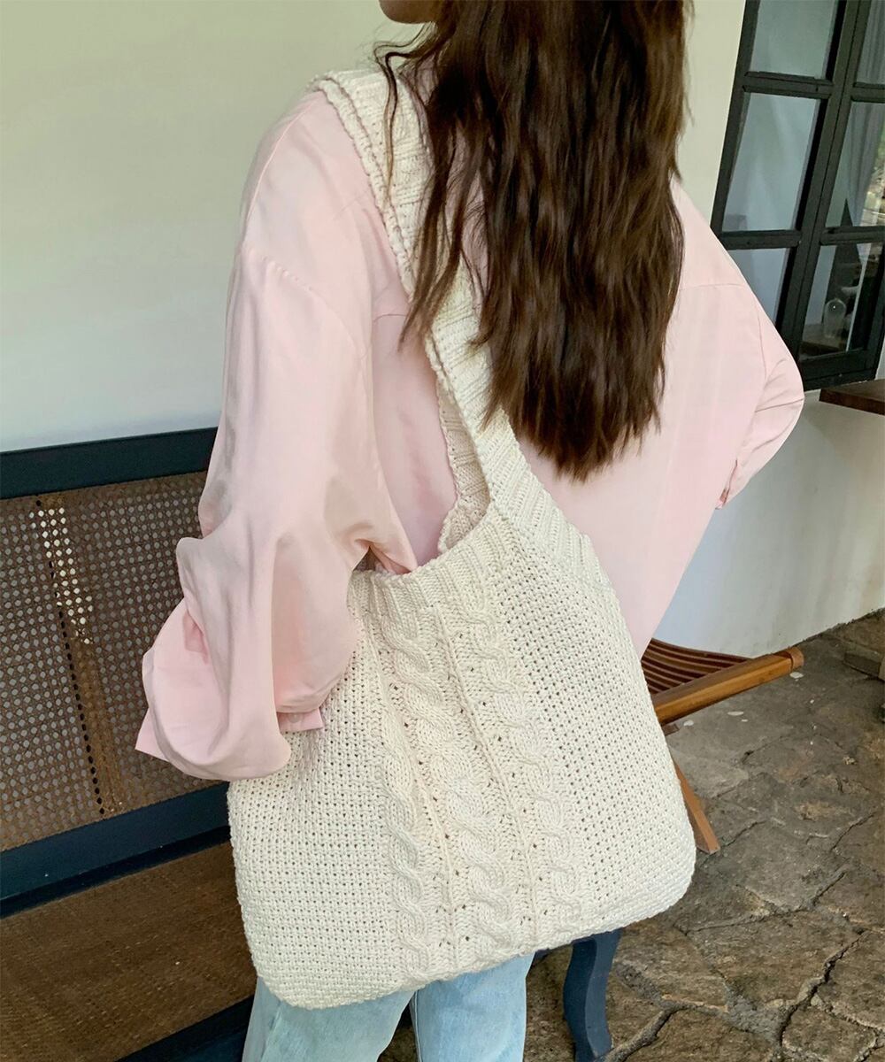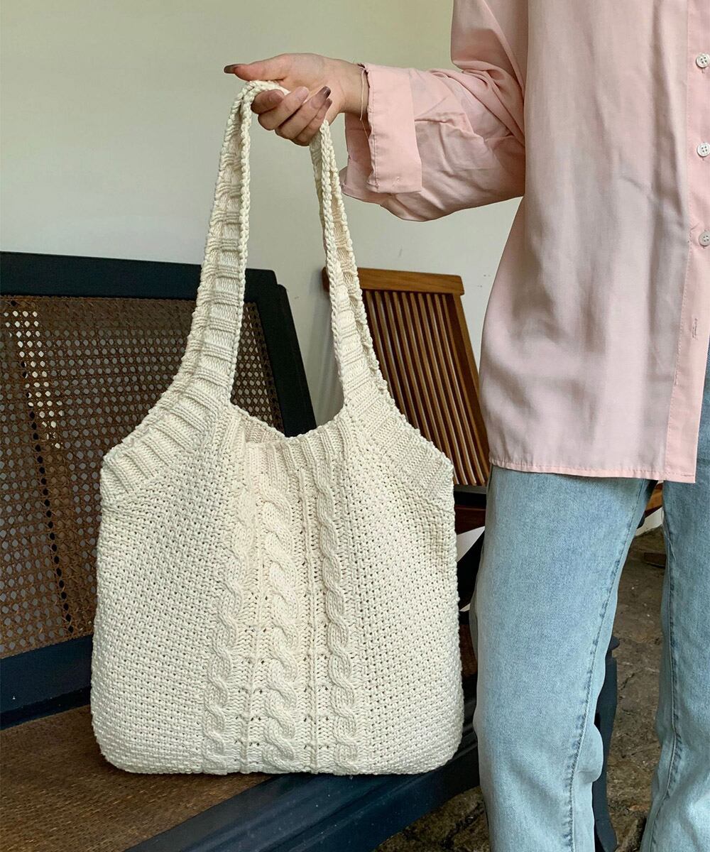 可愛いニット編みのトートバッグ。
