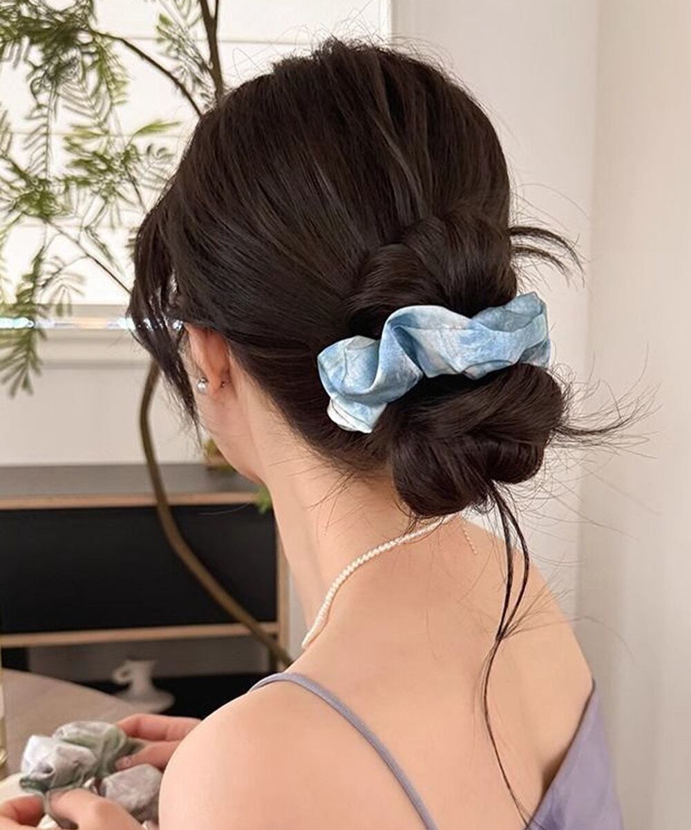【日本倉庫即納】 シュシュ マーブル柄 ボリュームヘアゴム