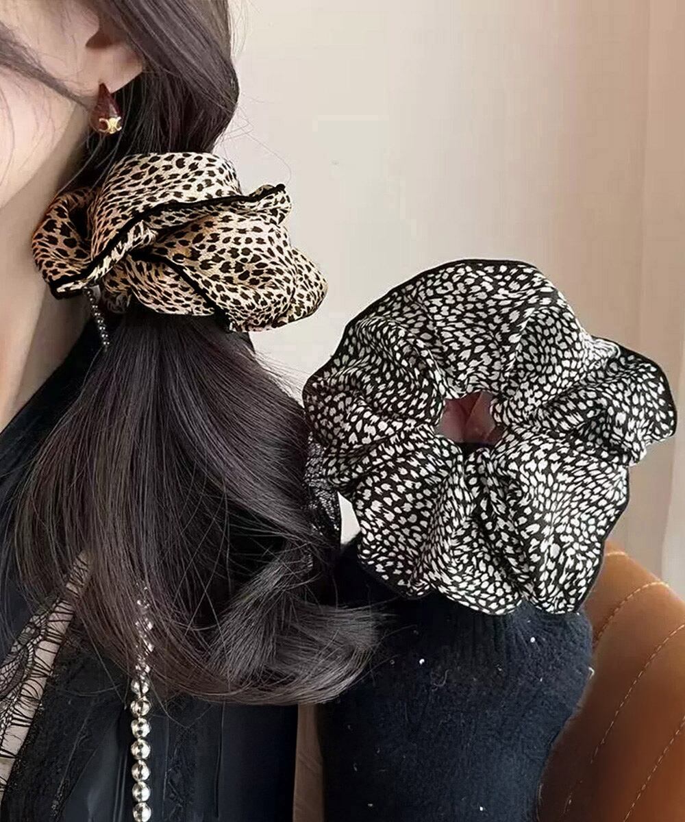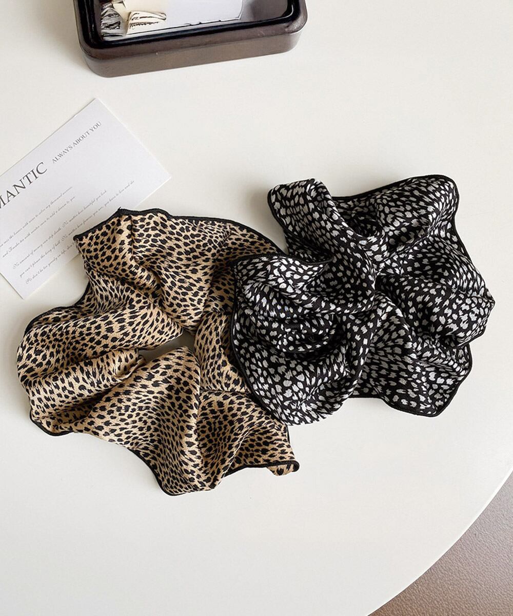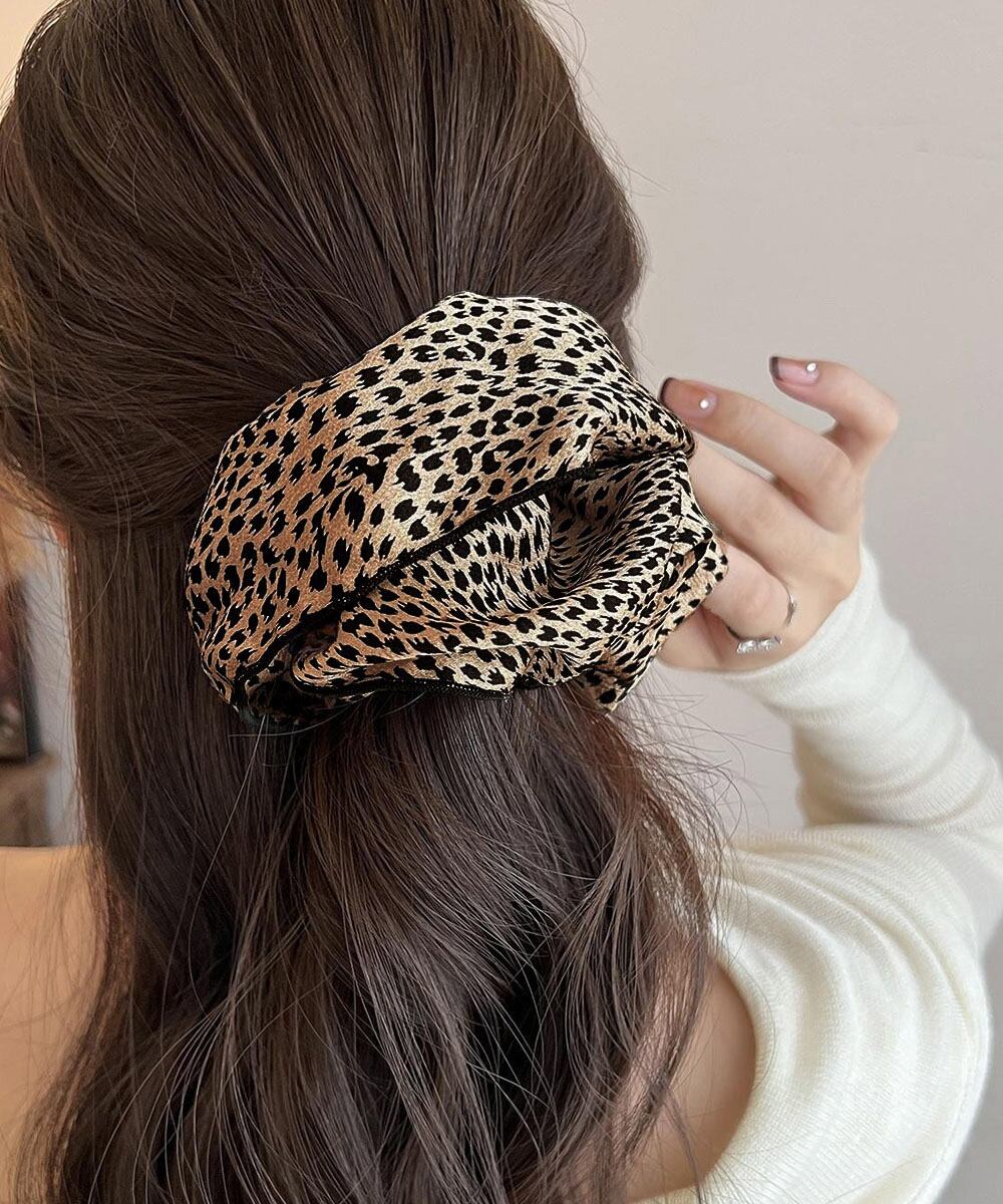 【日本倉庫即納】 レオパード柄シュシュ ボリューム 髪飾り