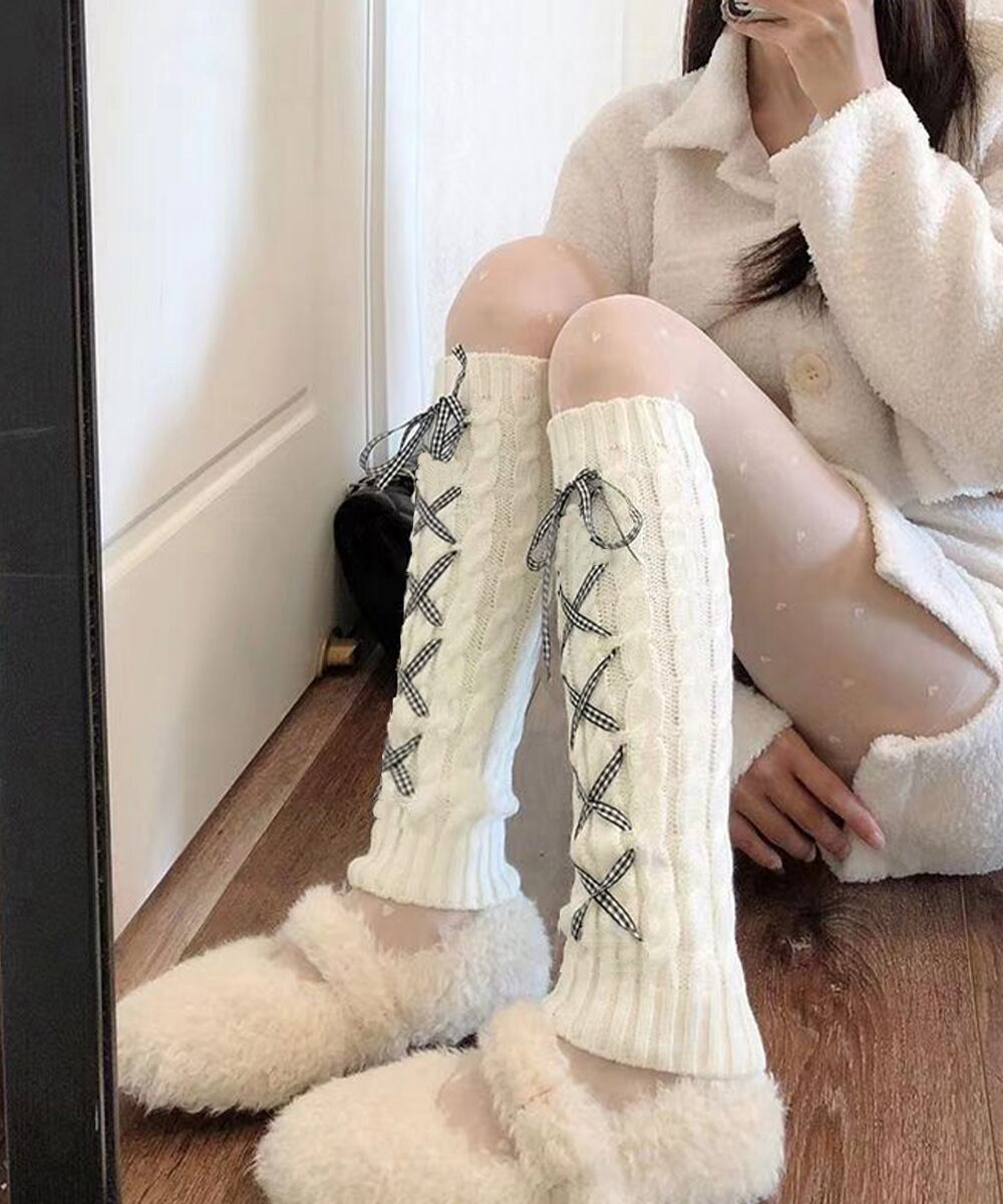 レースアップが可愛いニットレッグウォーマー。