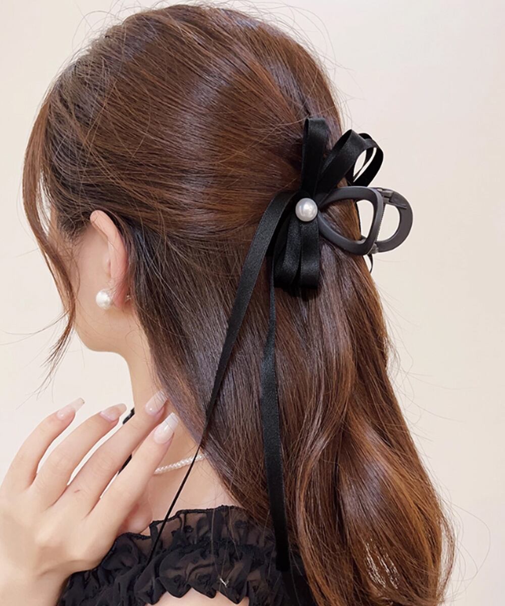リボンモチーフの立体感が、後ろ姿を上品に彩るバンスクリップ 。