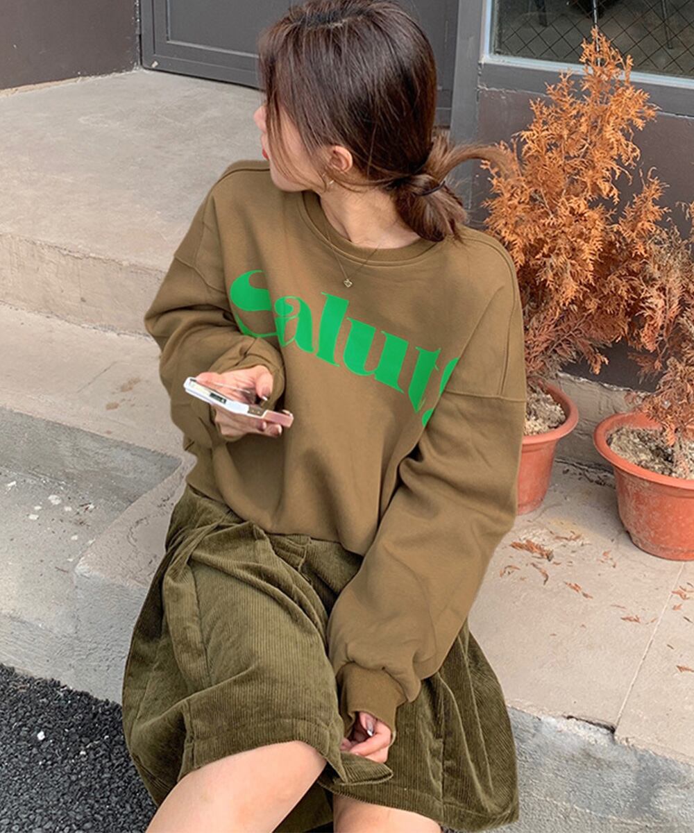 英字ロゴがシンプルながら個性的で、カジュアルにもフェミニンにも着こなせる裏起毛トレーナー。