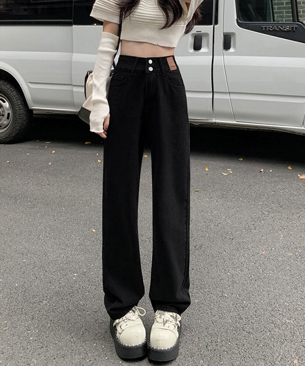 【日本倉庫即納】 ハイウエスト デニムパンツ ダブルボタン