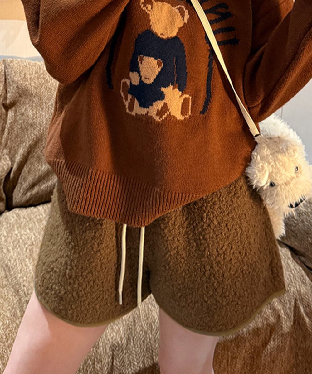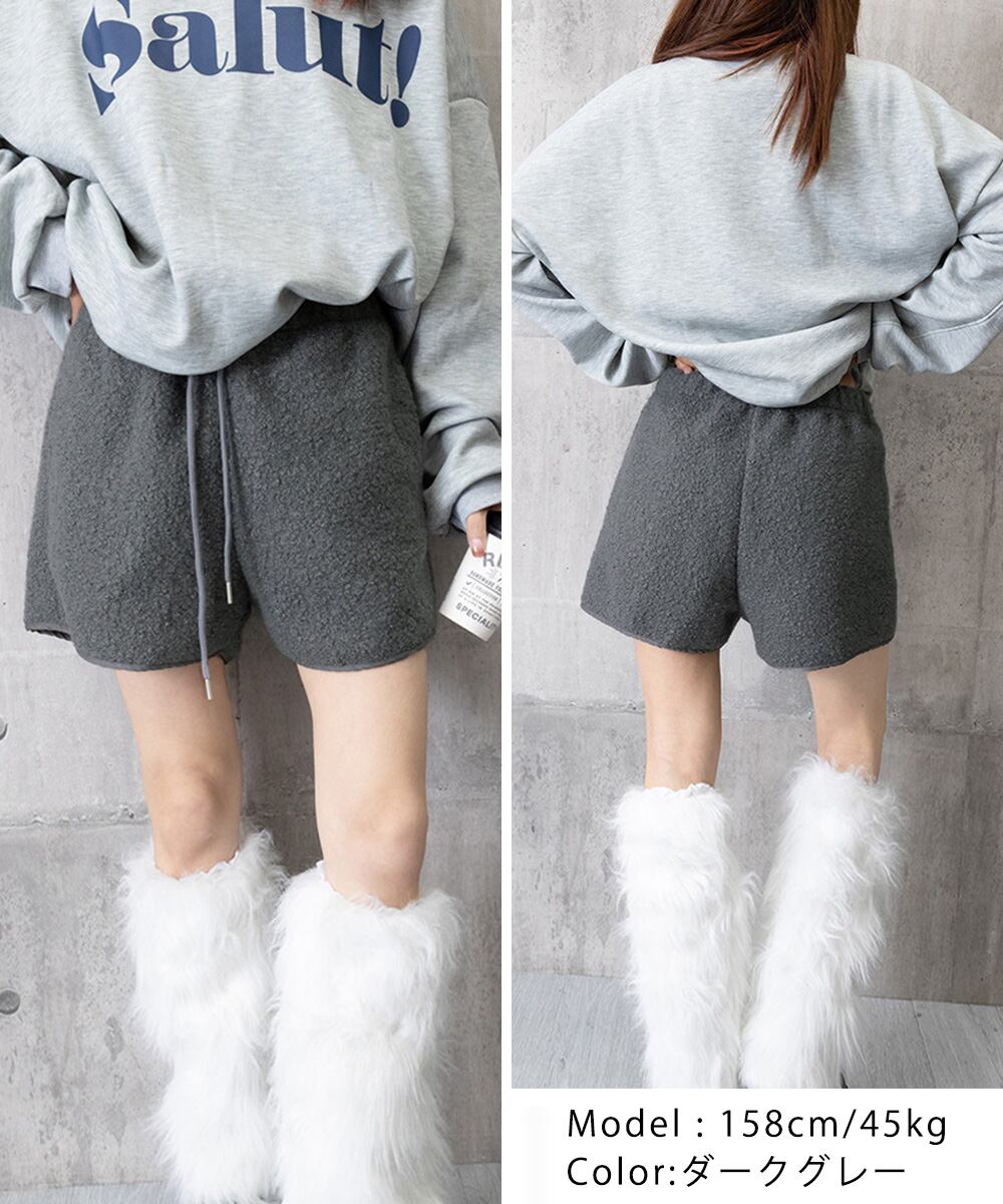 もこもこ感たっぷりで思わず触れたくなる、秋冬にぴったりのボアショートパンツ。
