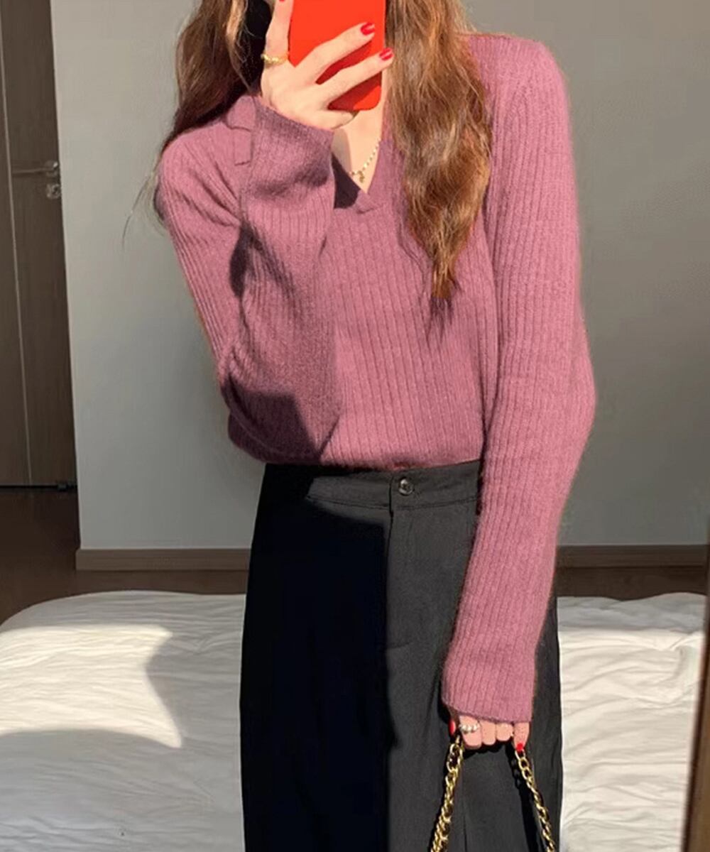 【日本倉庫即納】 スキッパーニット韓国風リブニットトップス