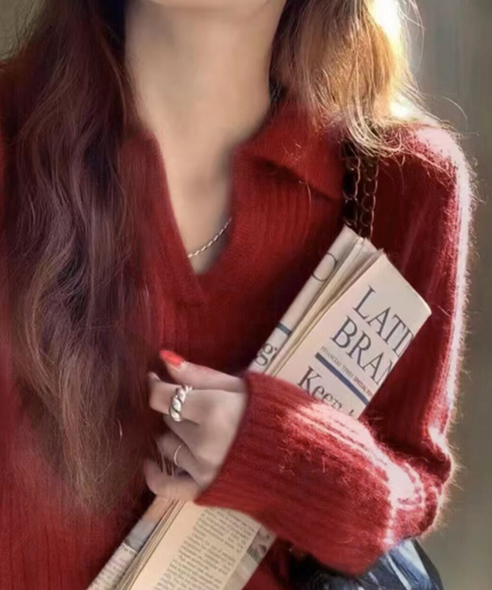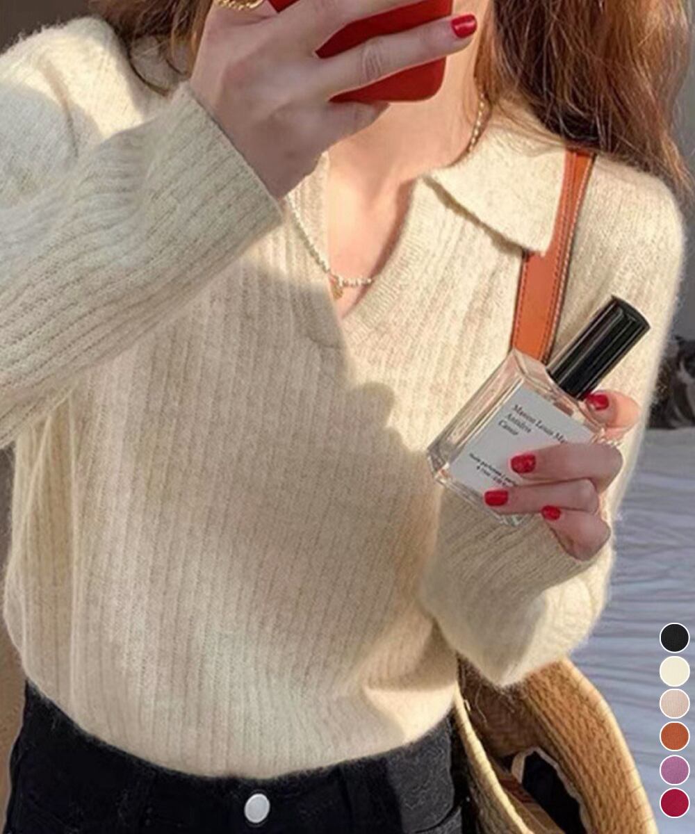 襟付きニット秋冬服 大人可愛いトップス セーターきちんと感