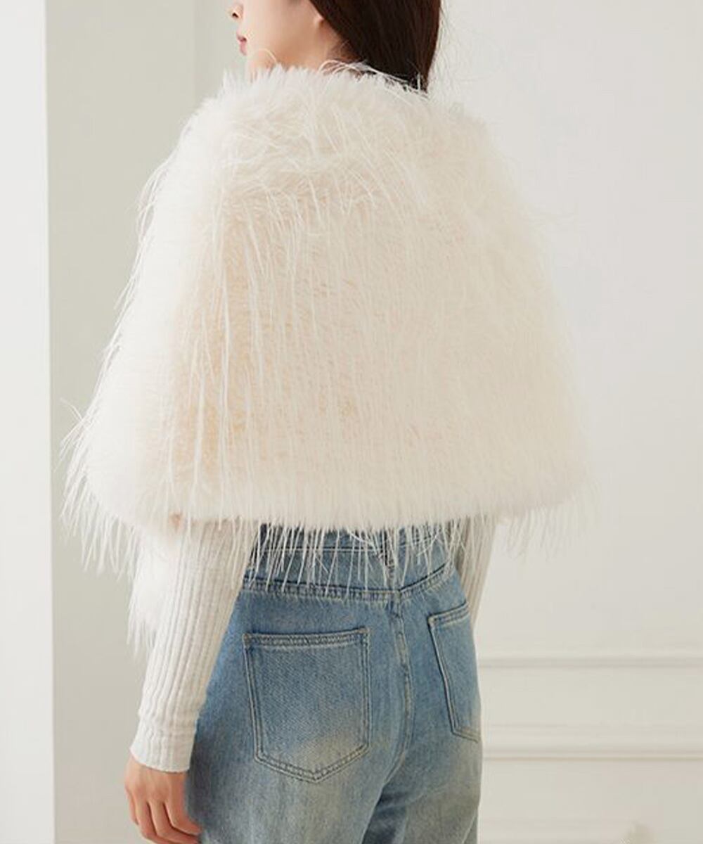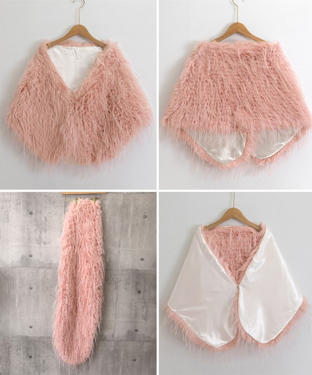 エコファーボレロケープ韓国風 ボリュームファーポンチョレディース きれいめドレスケープ 暖かい 結婚式ストールパーティー