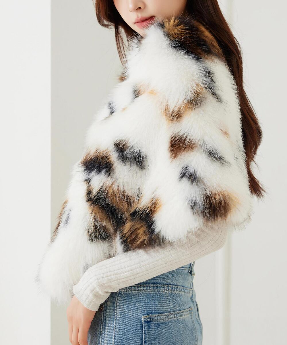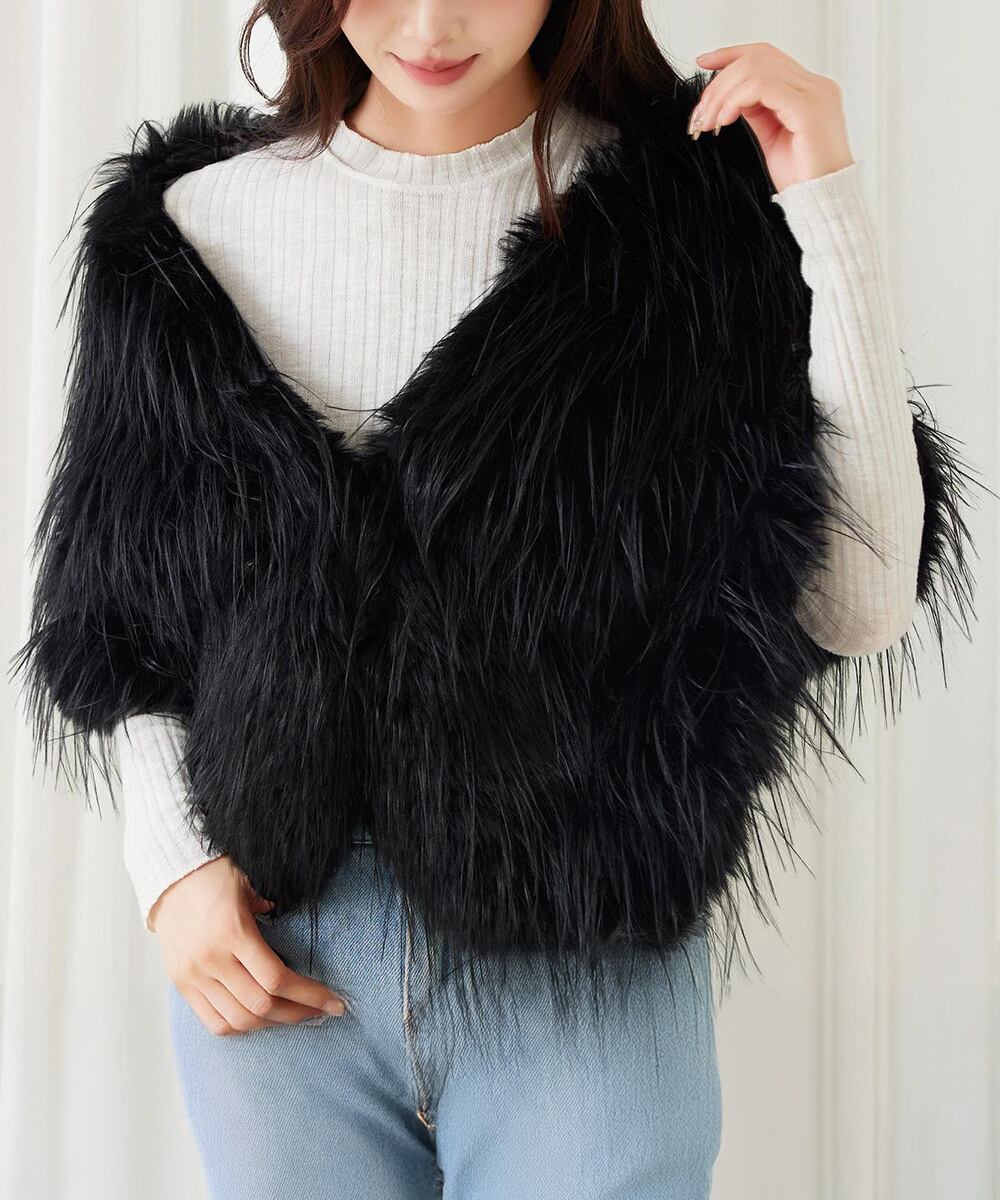 贅沢なボリューム感のエコファーをあしらった、見た目にも華やかで温かみのあるレディースファーケープ。