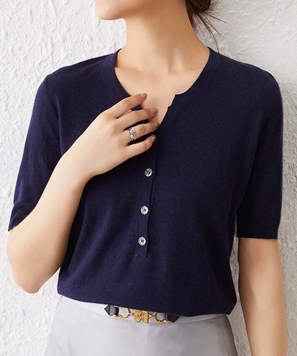 ニットカットソー レディース 無地ハーフボタン 柔らかいプルオーバー 五分袖 通勤服 夏ニット ベーシック 着回し力抜群