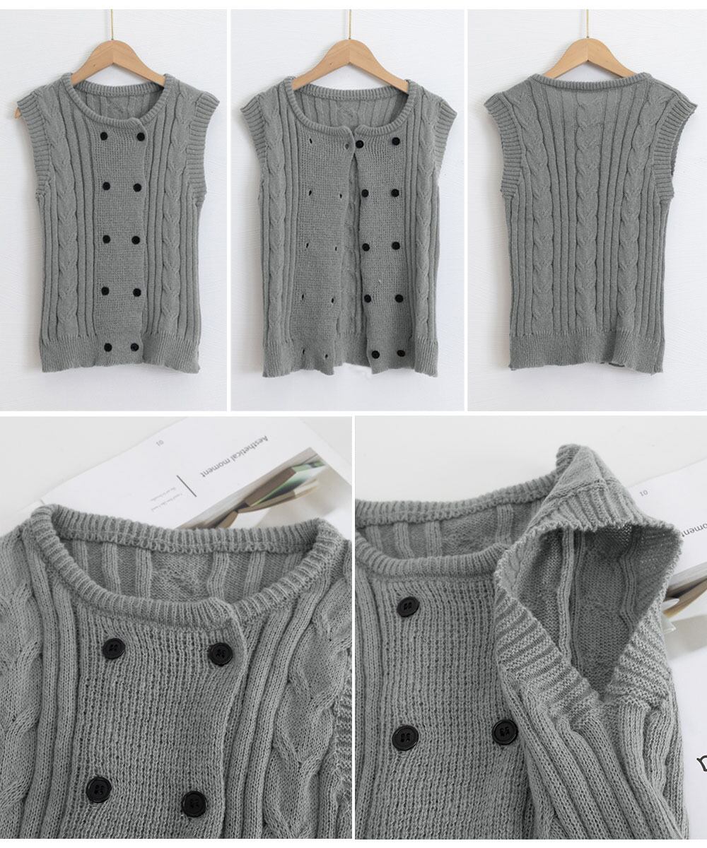 【日本倉庫即納】 ケーブル編みニットベスト ダブルブレスト