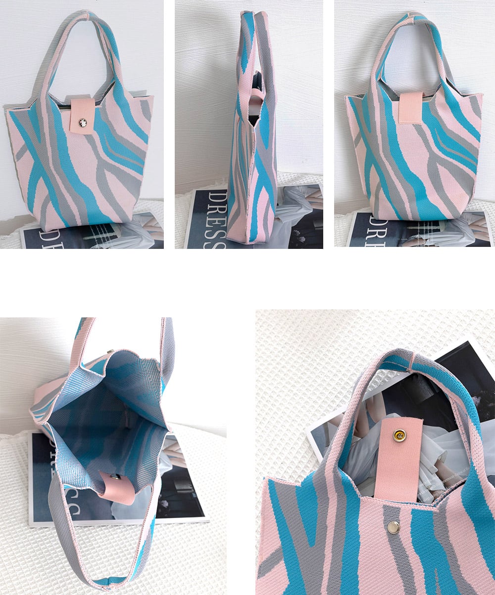 可愛い ニット編み 縦型 トートバッグ おしゃれ サブバッグ 軽量 折り畳める鞄 ボタン付き ランチバッグ 手提げバッグ